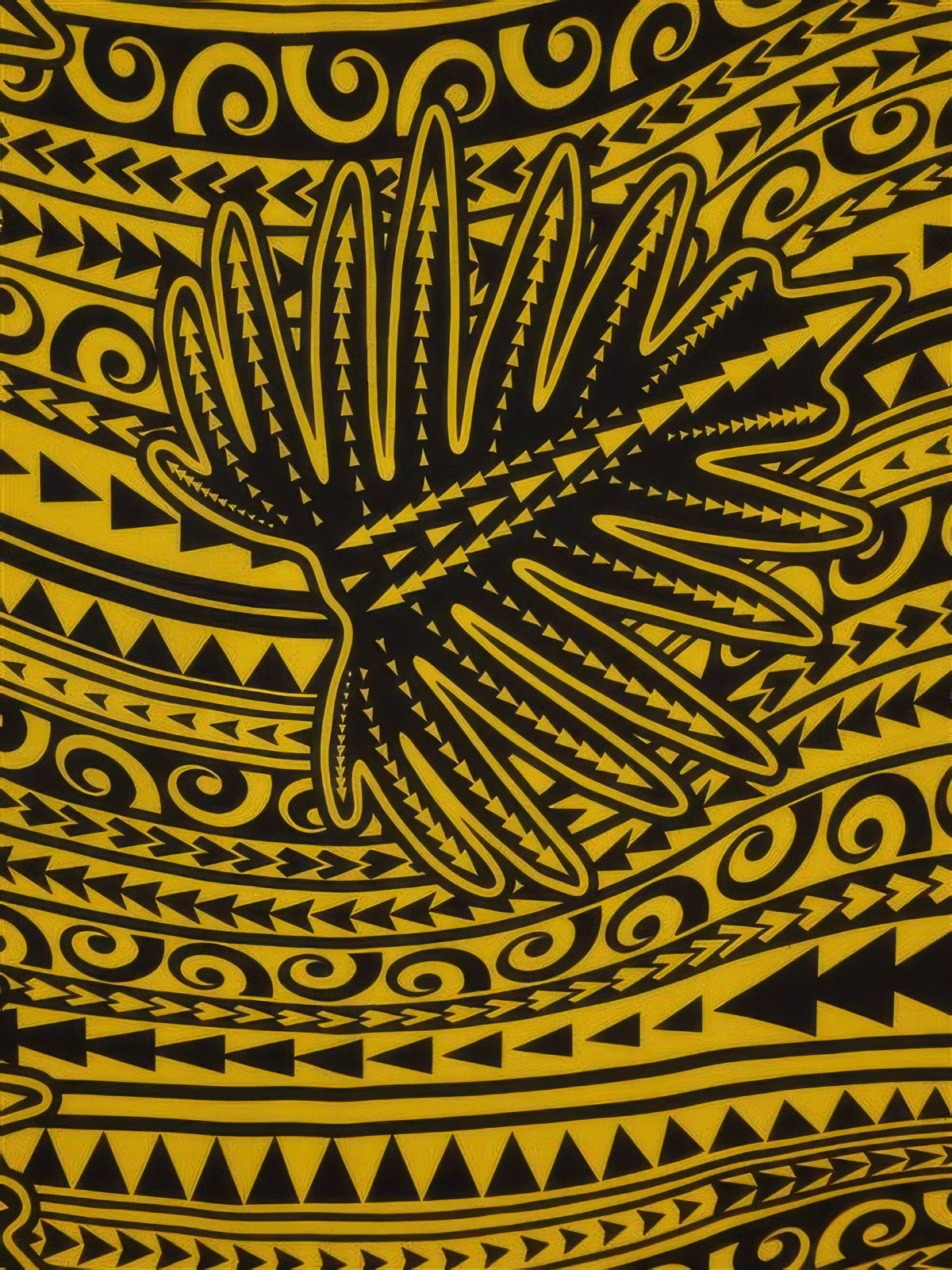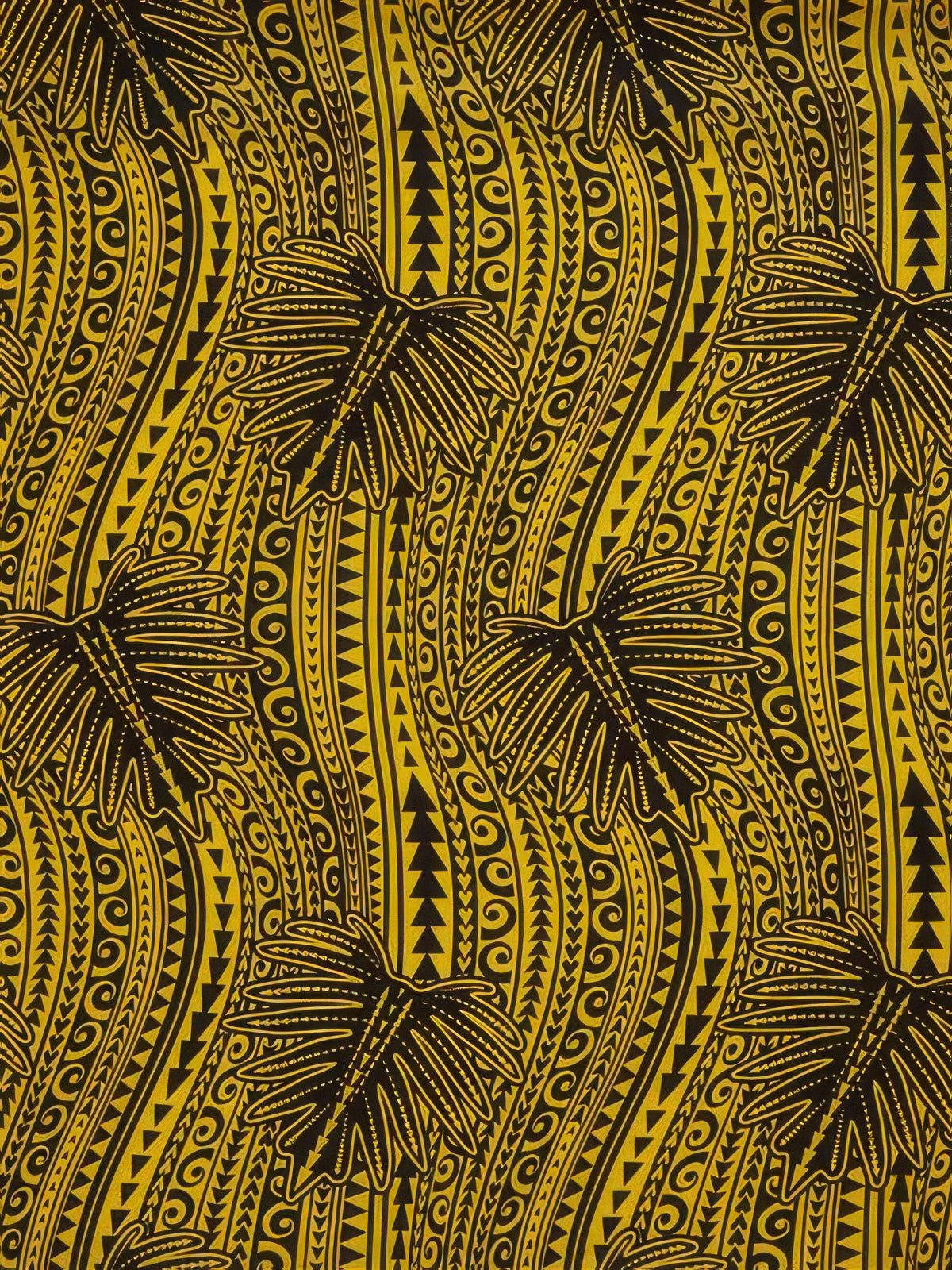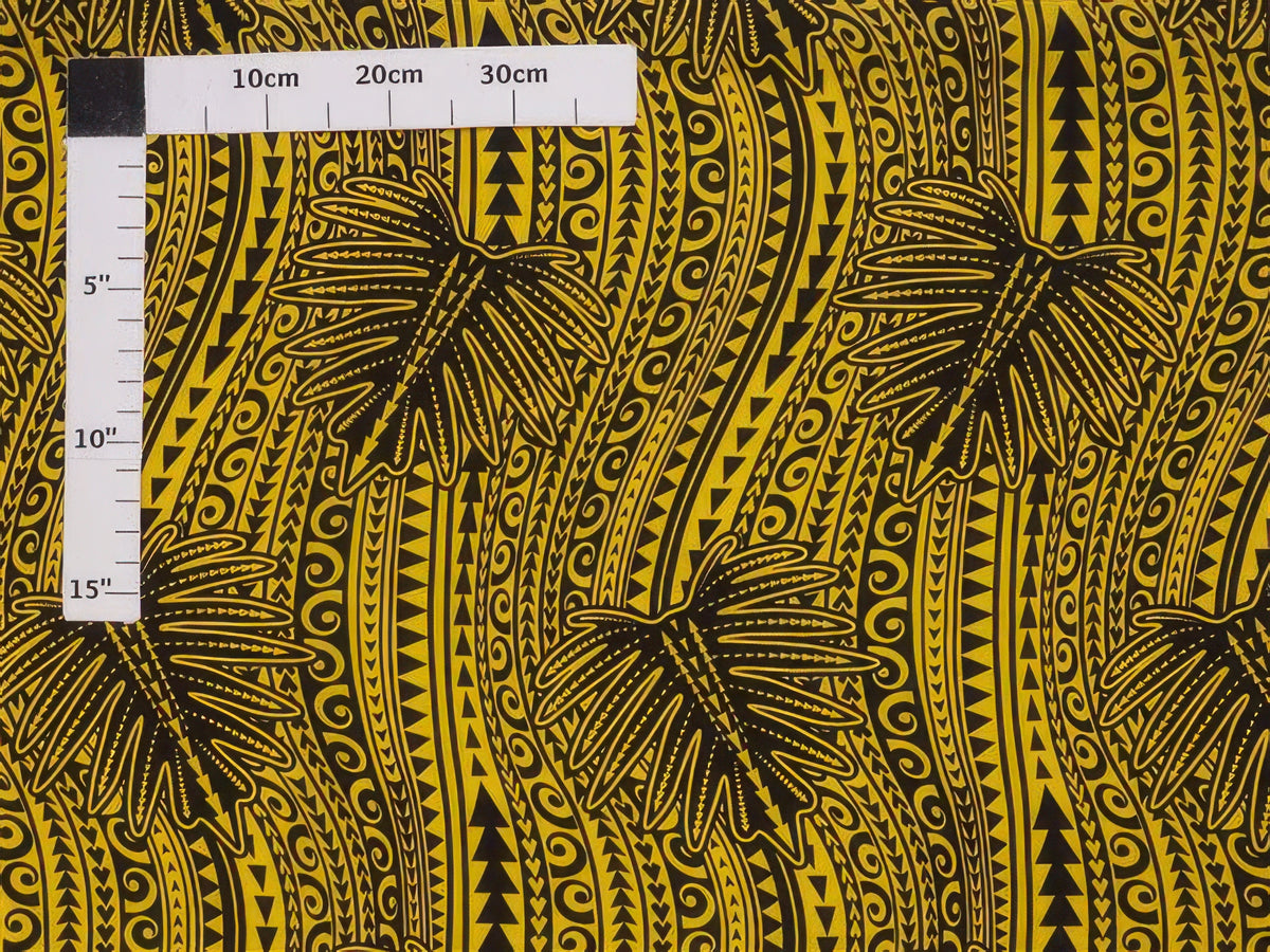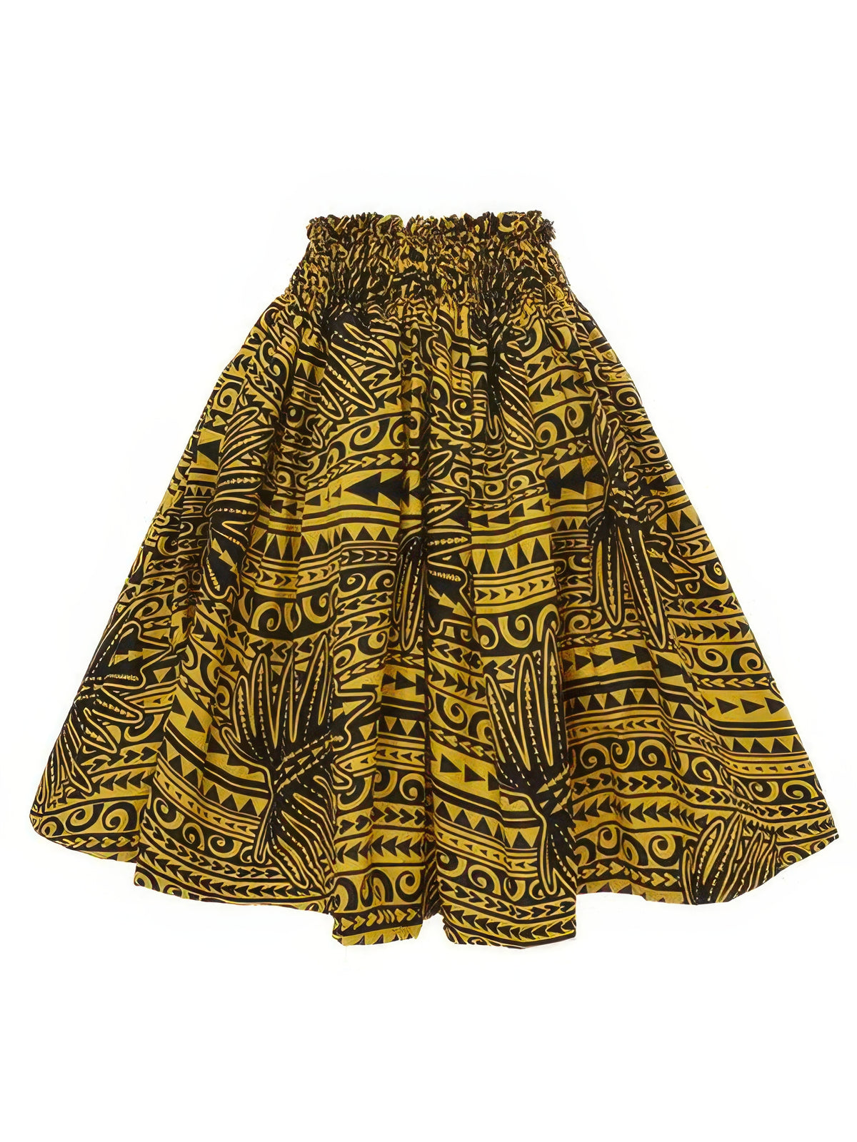 Ka Makani - Tapa & Laua'e Fern Black & Yellow Poly Cotton Hula Pau Skirt / 3 Bands