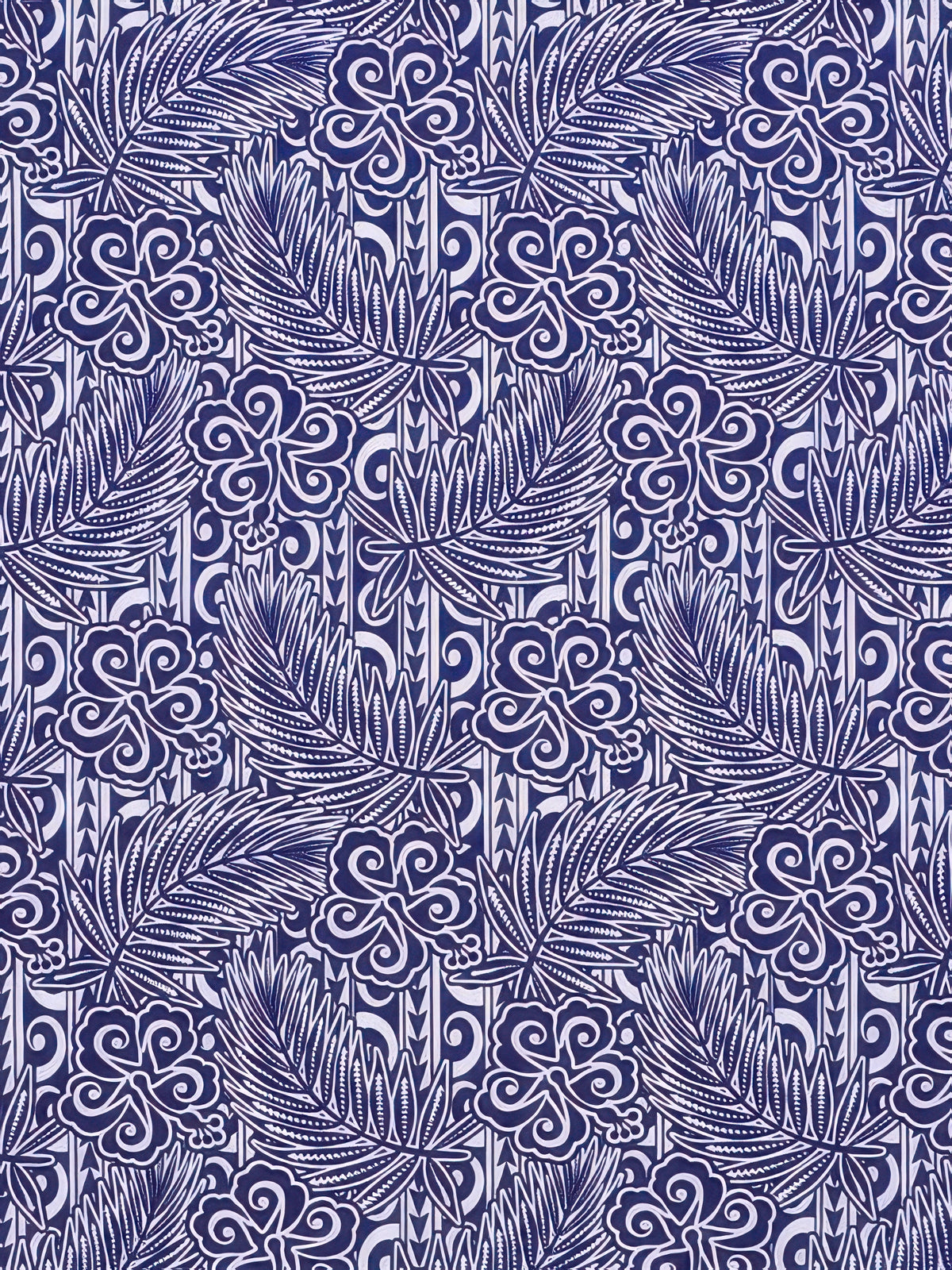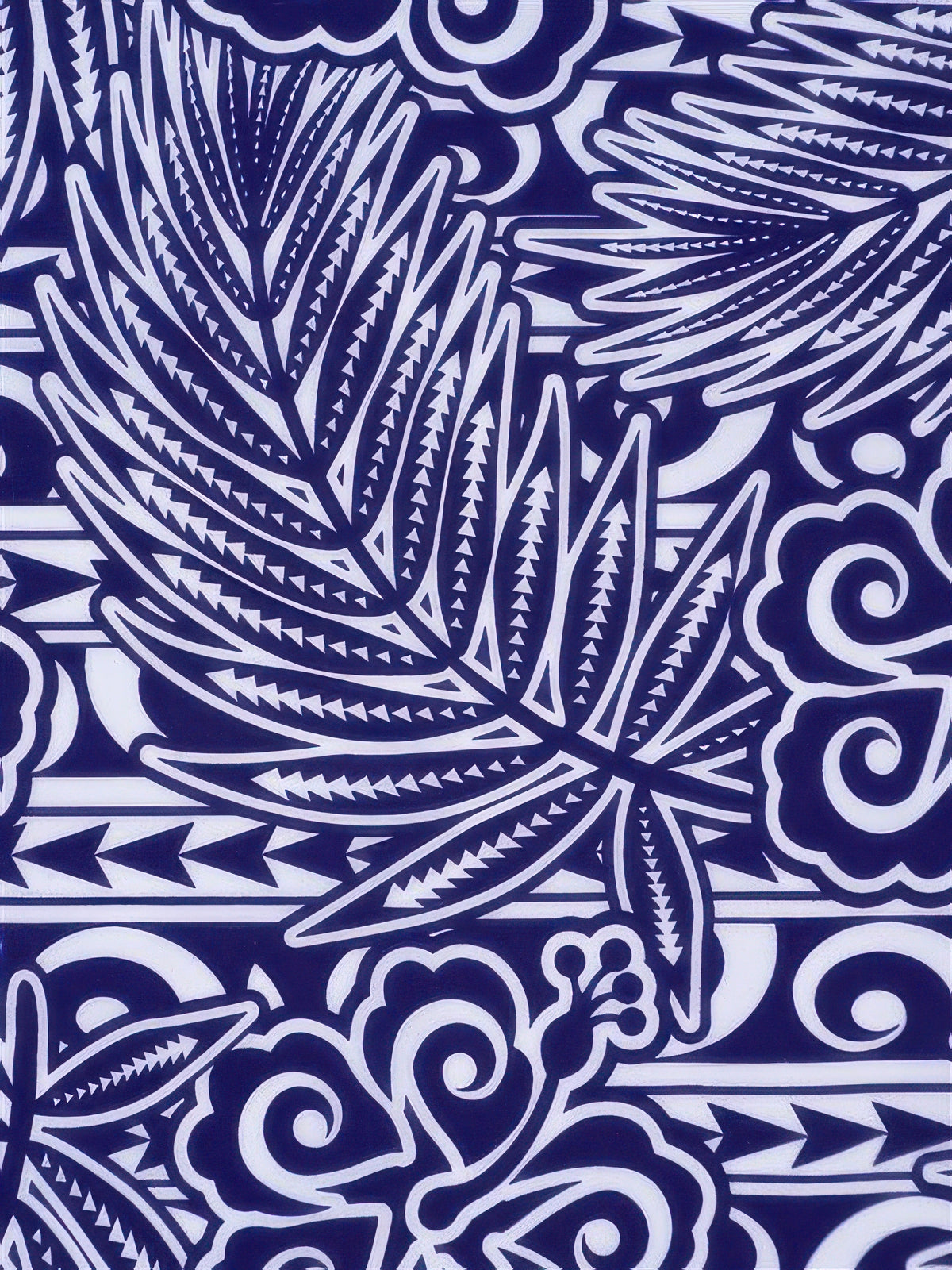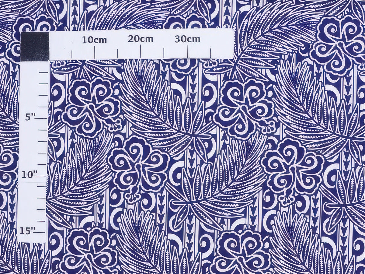 Ka Makani - Tapa Leaf Cream & Navy Poly Cotton Hula Pau Skirt / 3 Bands