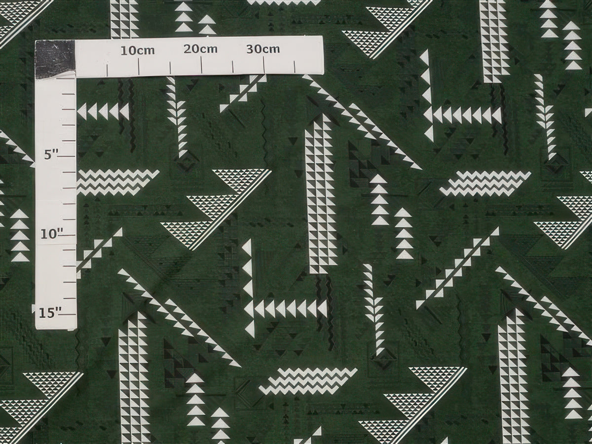 Ka Makani - Tribal Green Poly Cotton Hula Pau Skirt / 3 Bands