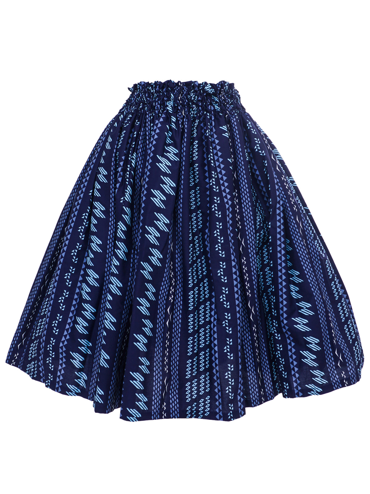 Ka Makani - Tribal Triangle Navy Poly Cotton Hula Pau Skirt / 3 Bands