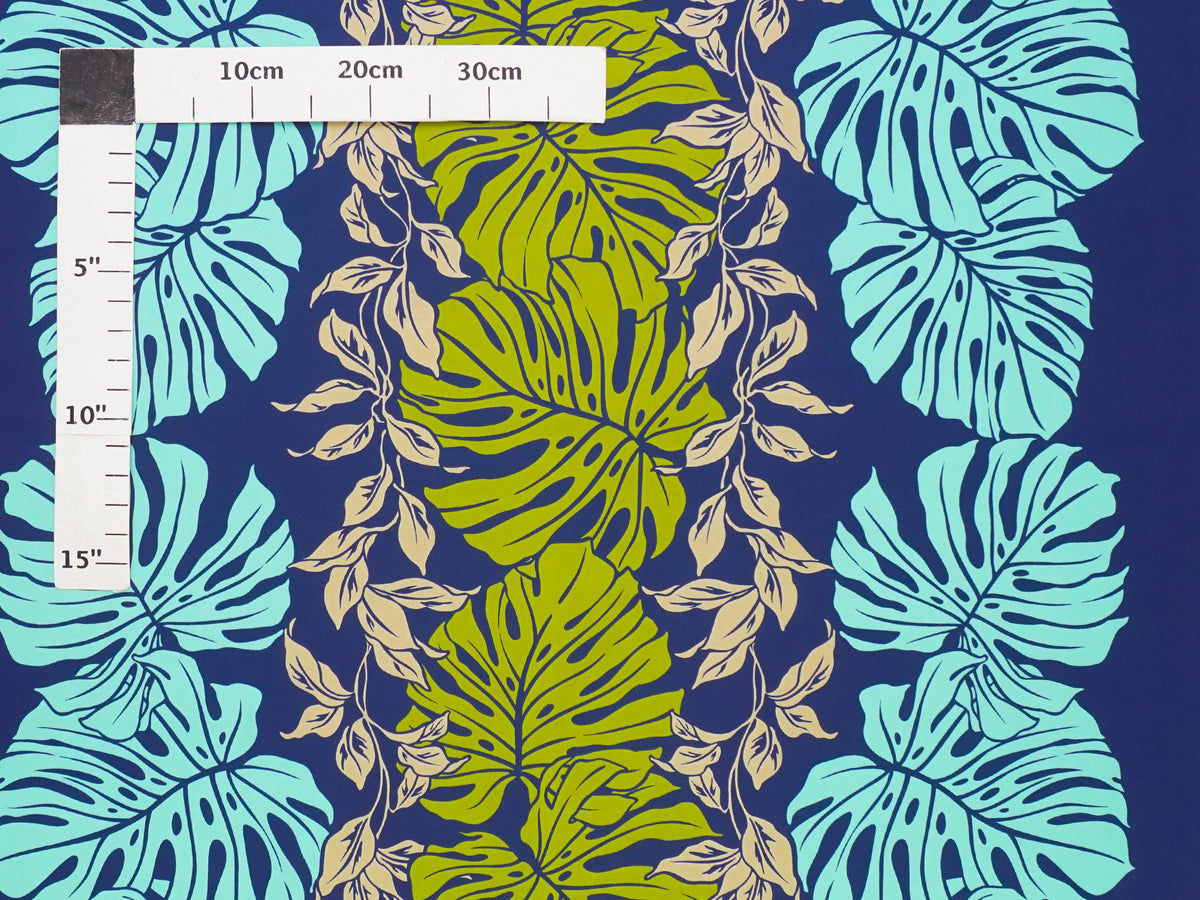 Ka Makani - Big Monstera Leaf Navy Poly Cotton Single Pau Skirt / 3 Bands
