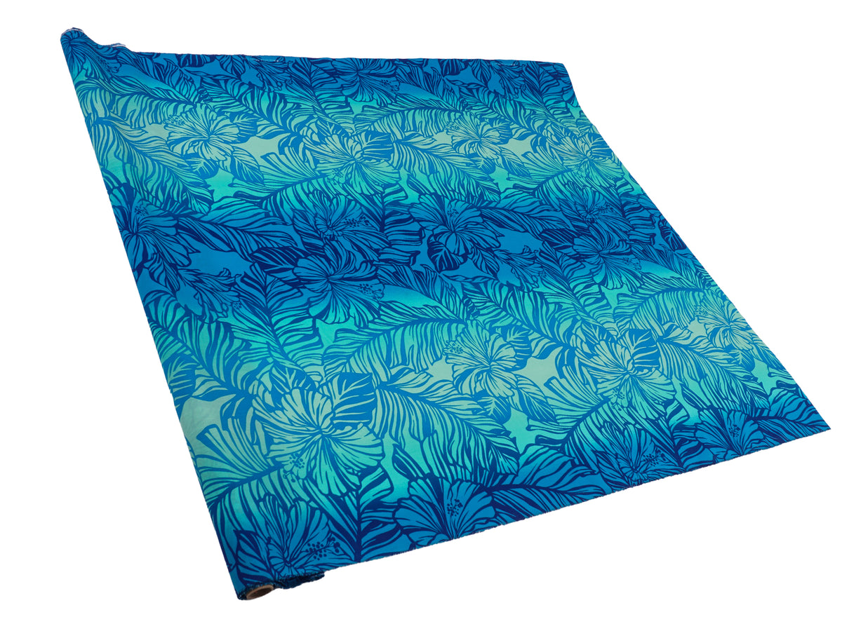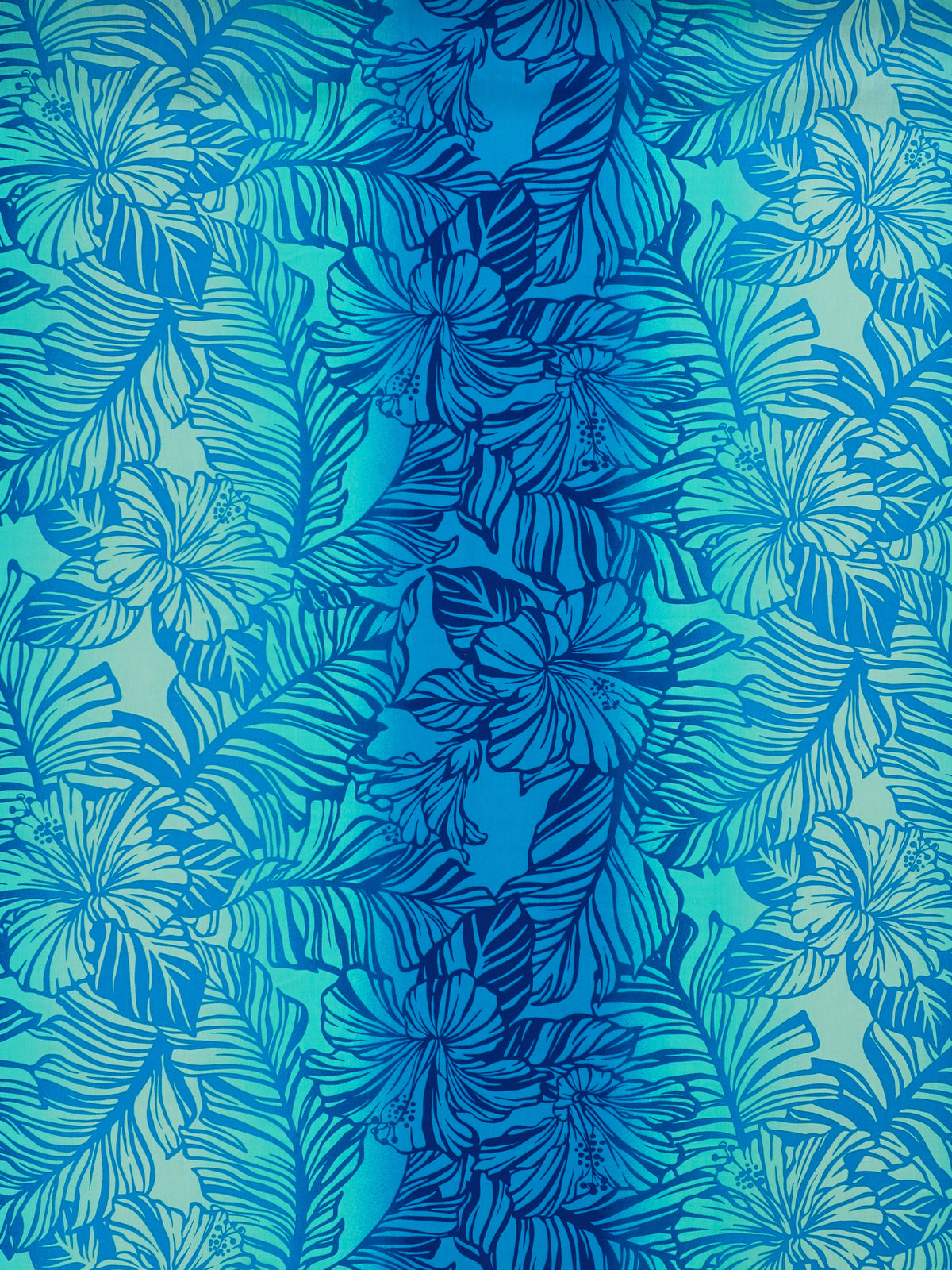 Ka Makani - Hibiscus Gradation Blue Poly Cotton Single Pau Skirt / 3 Bands