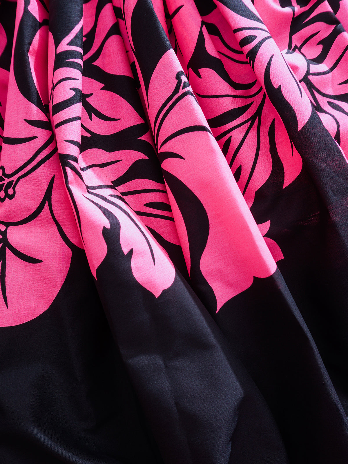 Ka Makani - Hibiscus Pink & Black Poly Cotton Hula Pau Skirt