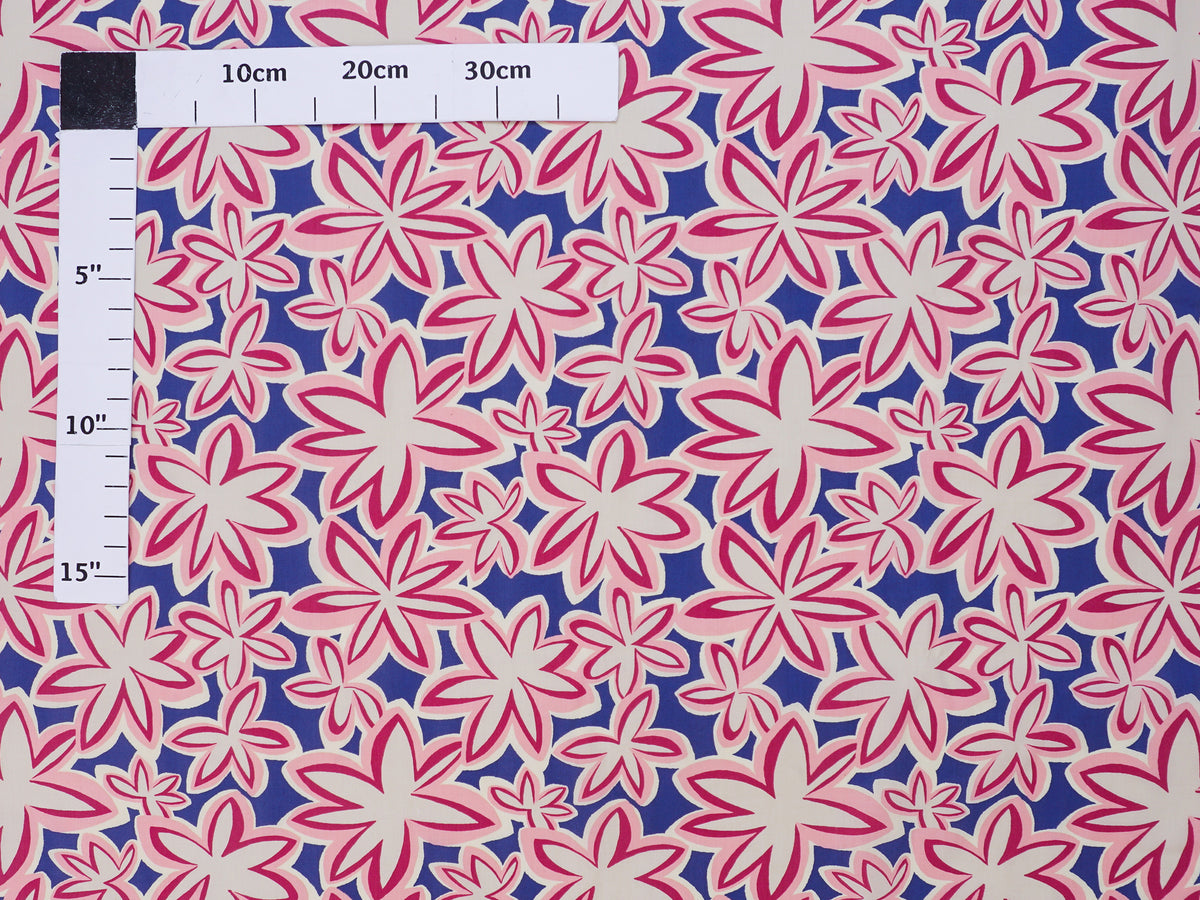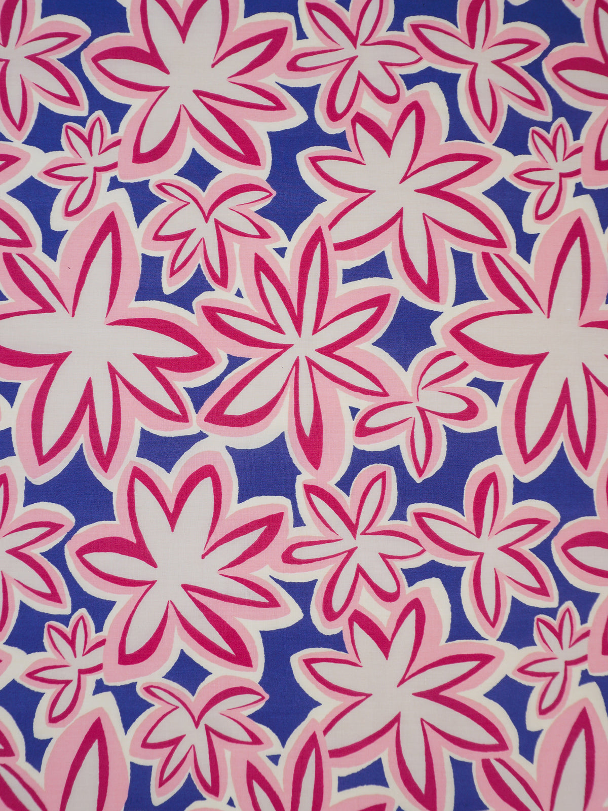 Ka Makani - Lovely Tiare Blue & Pink Poly Cotton Hula Pau Skirt / 3 Bands