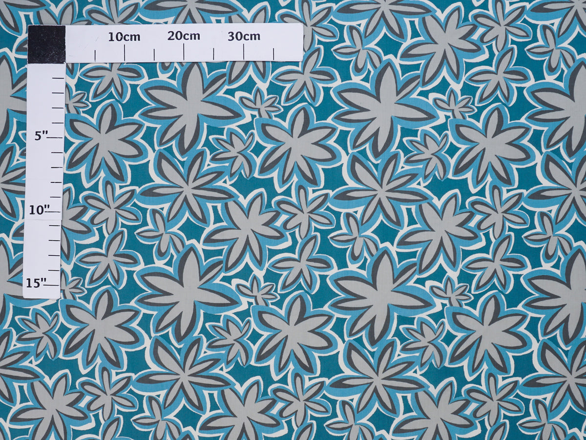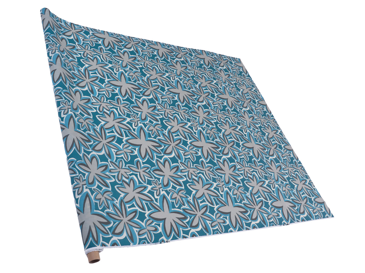 Ka Makani - Lovely Tiare Teal Poly Cotton Hula Pau Skirt / 3 Bands