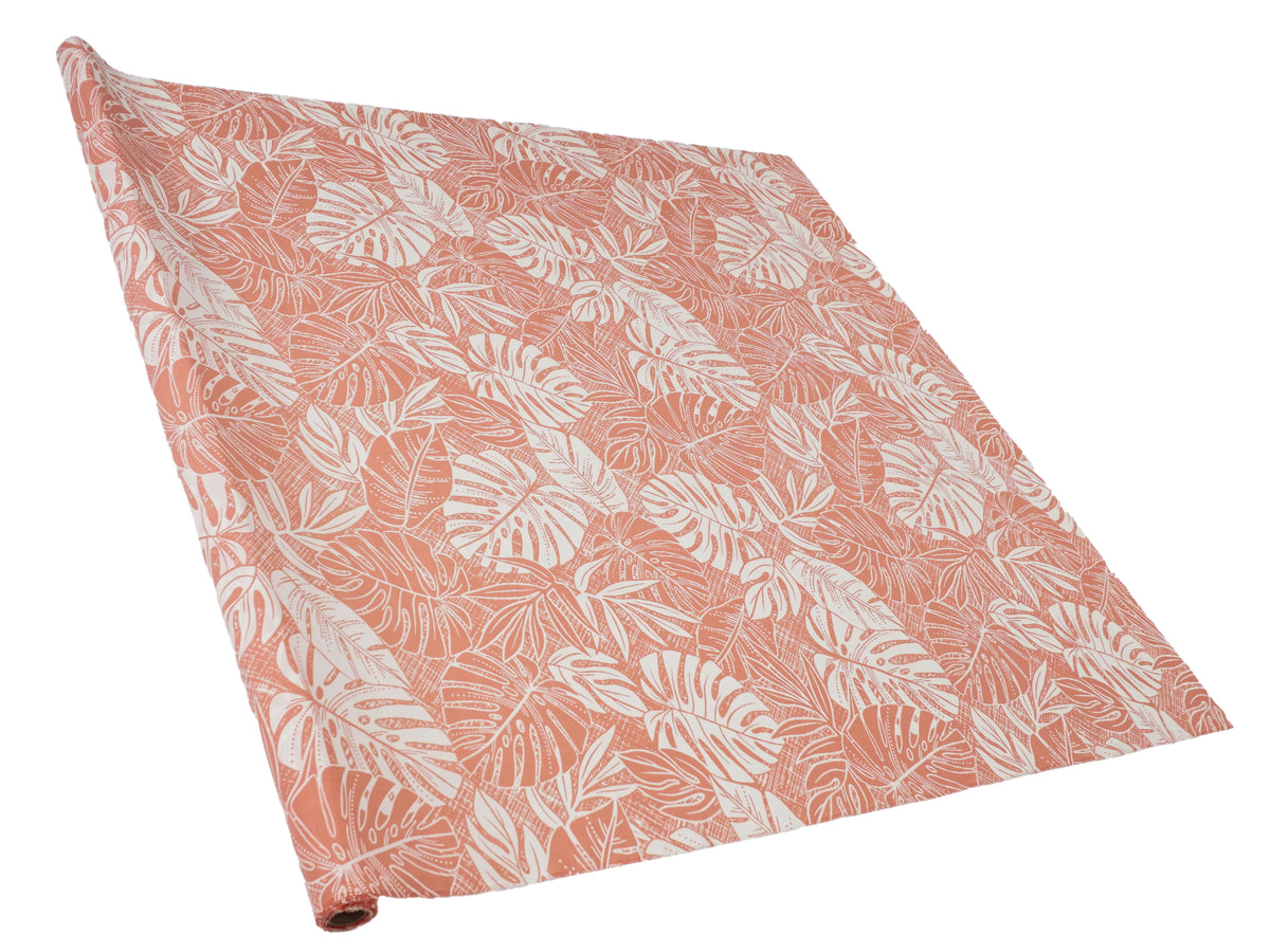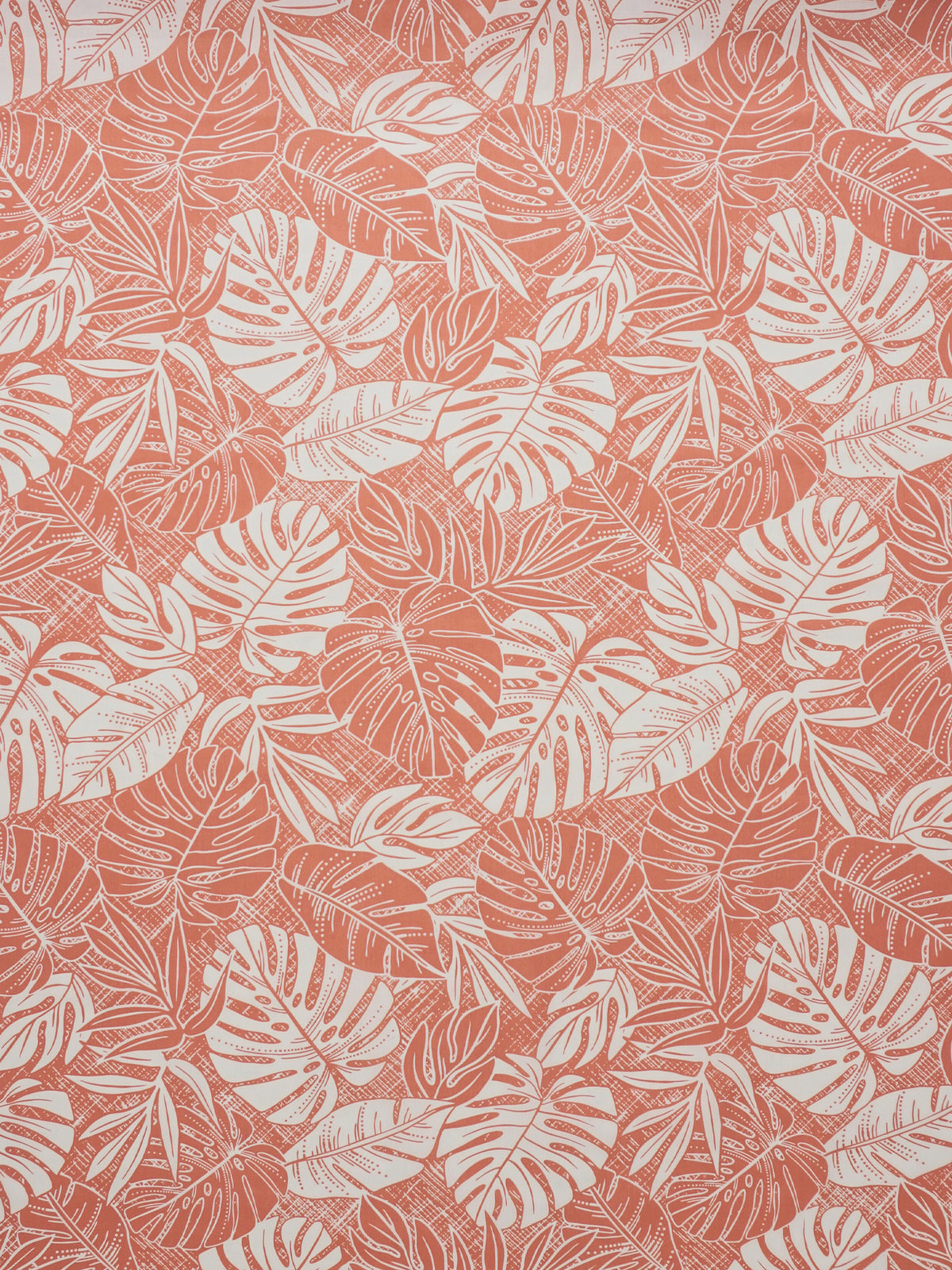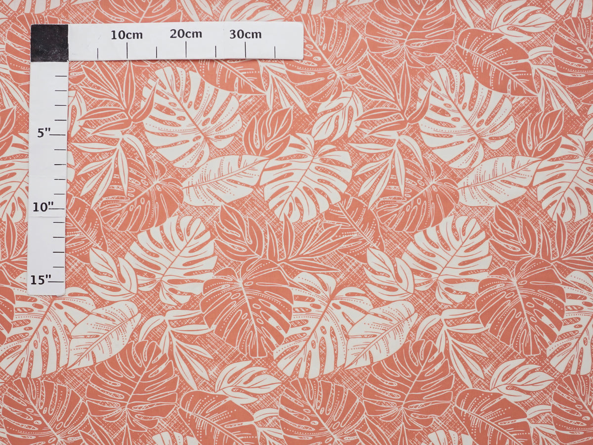 Ka Makani - Monstera & Areca Palm Leaf Coral Poly Cotton Hula Pau Skirt / 3 Bands