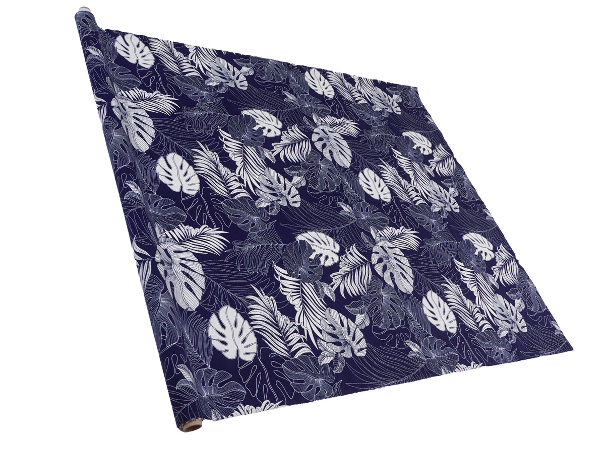 Ka Makani - Monstera Leaf Navy Poly Cotton Hula Pau Skirt / 3 Bands