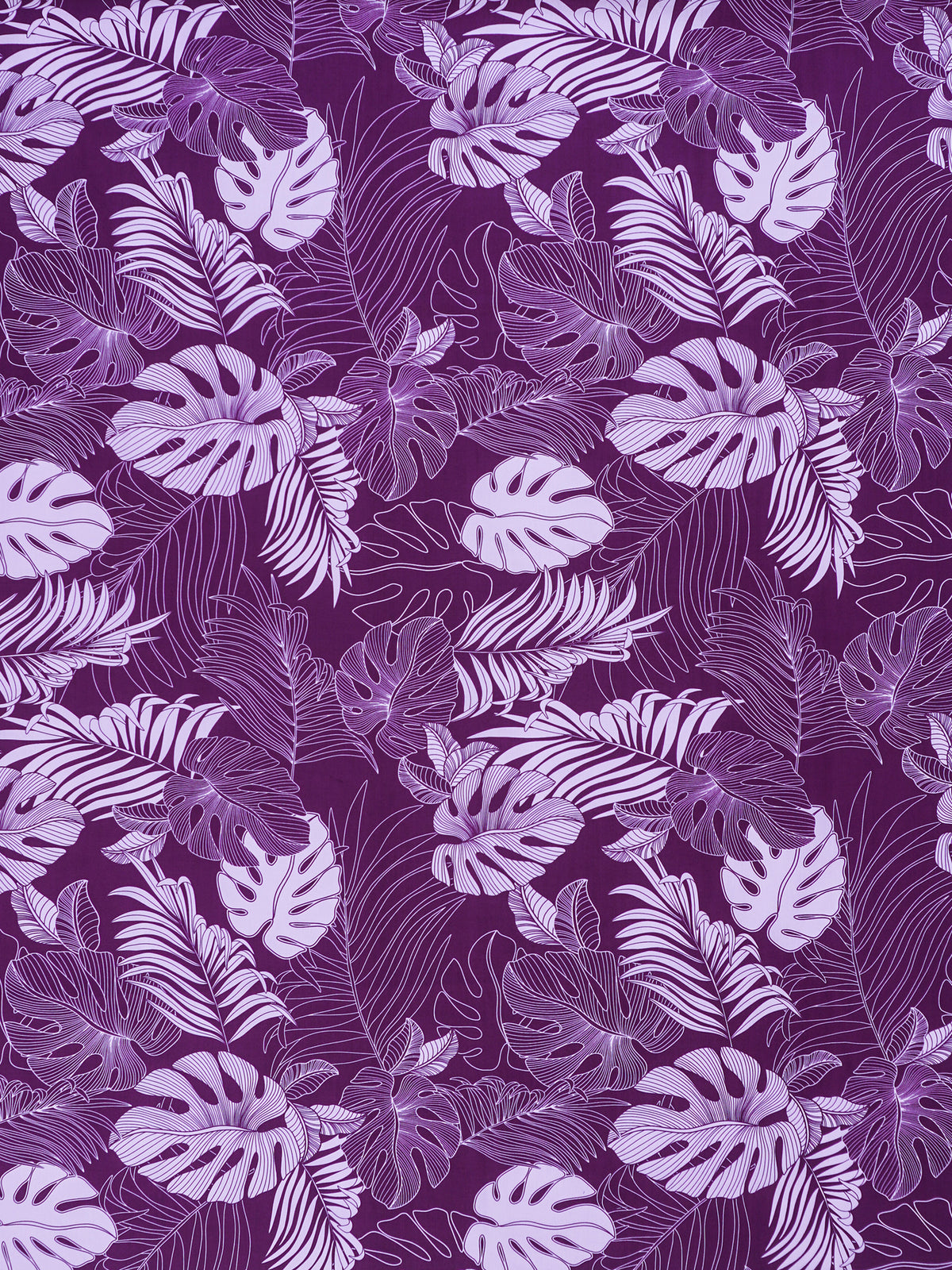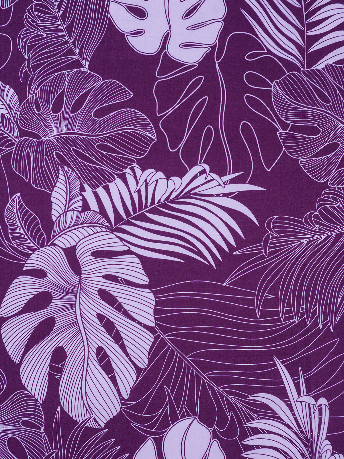 Ka Makani - Monstera Leaf Purple Poly Cotton Hula Pau Skirt / 3 Bands