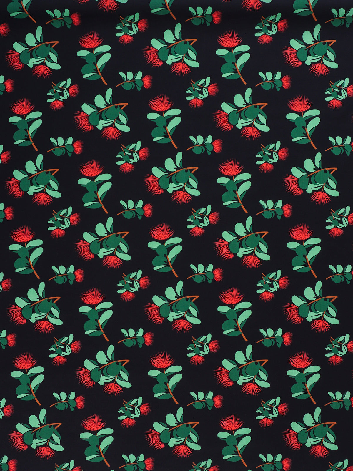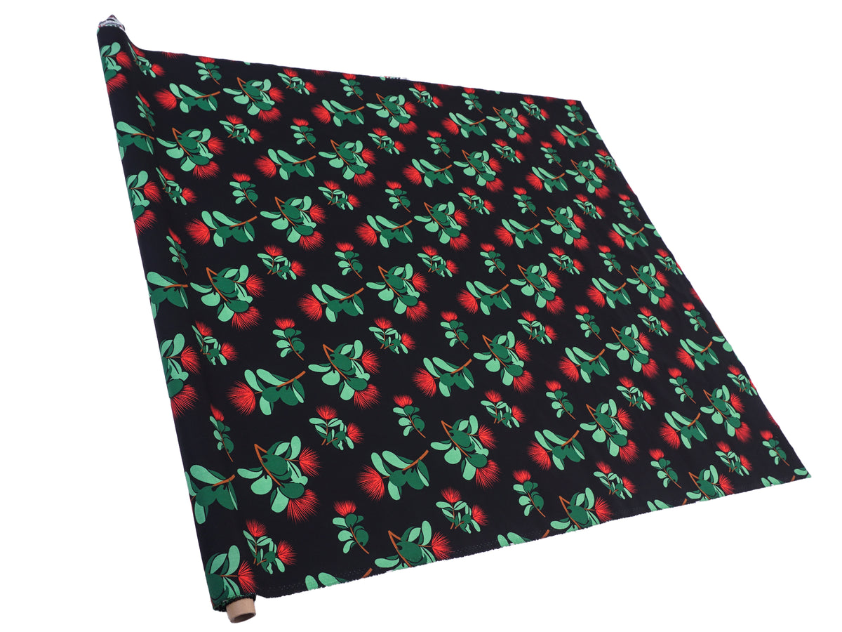 Ka Makani - Ohia Lehua Black Poly Cotton Hula Pau Skirt / 3 Bands