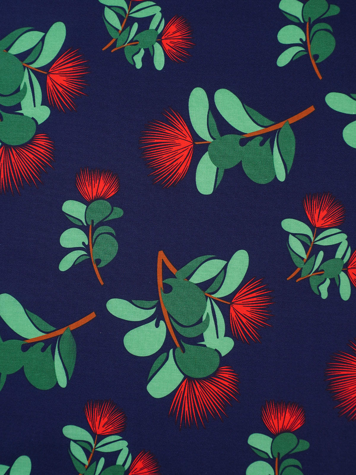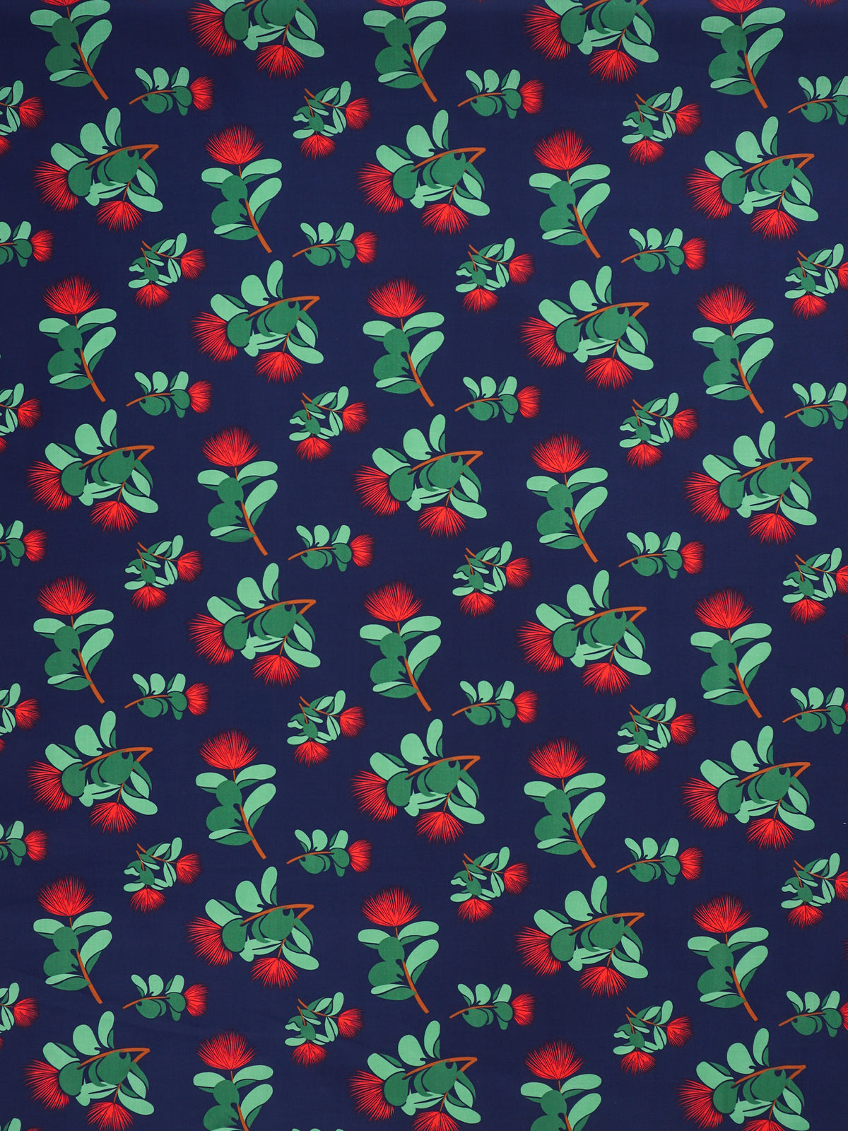 Ka Makani - Ohia Lehua Navy Poly Cotton Hula Pau Skirt / 3 Bands