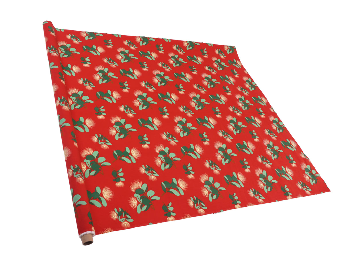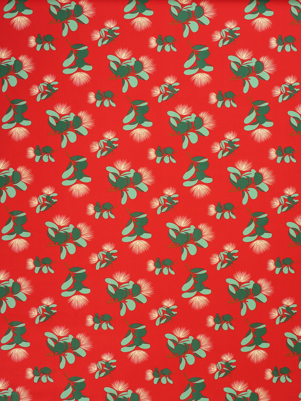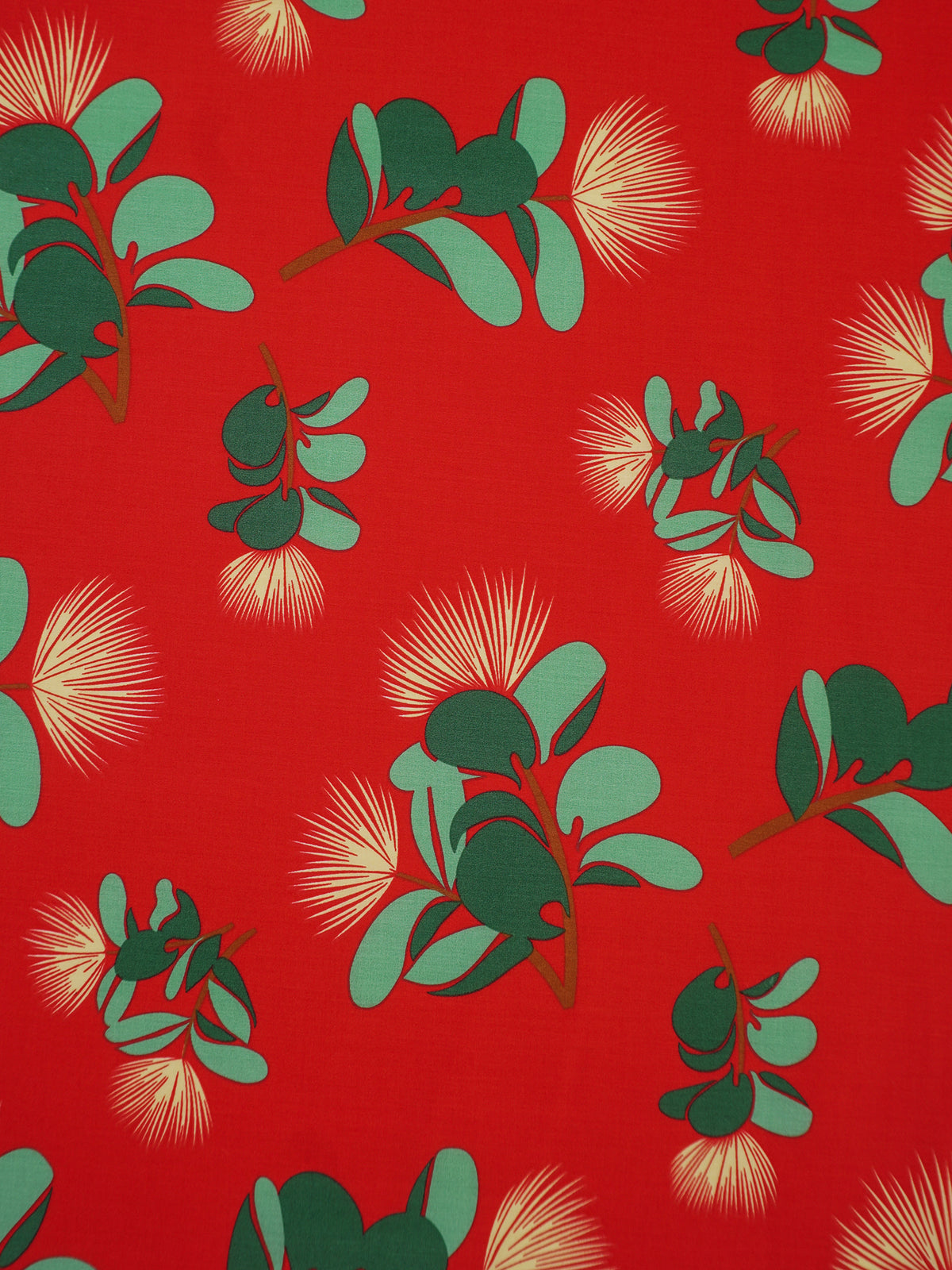 Ka Makani - Ohia Lehua Red Poly Cotton Hula Pau Skirt / 3 Bands