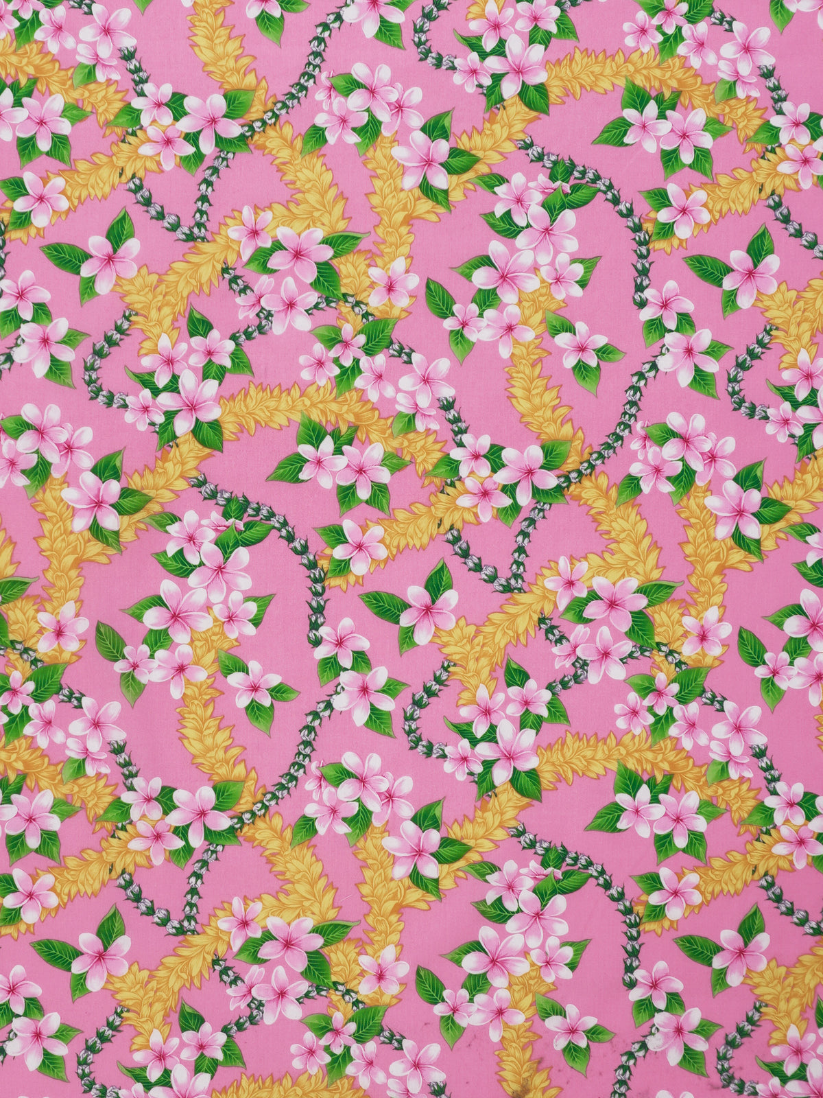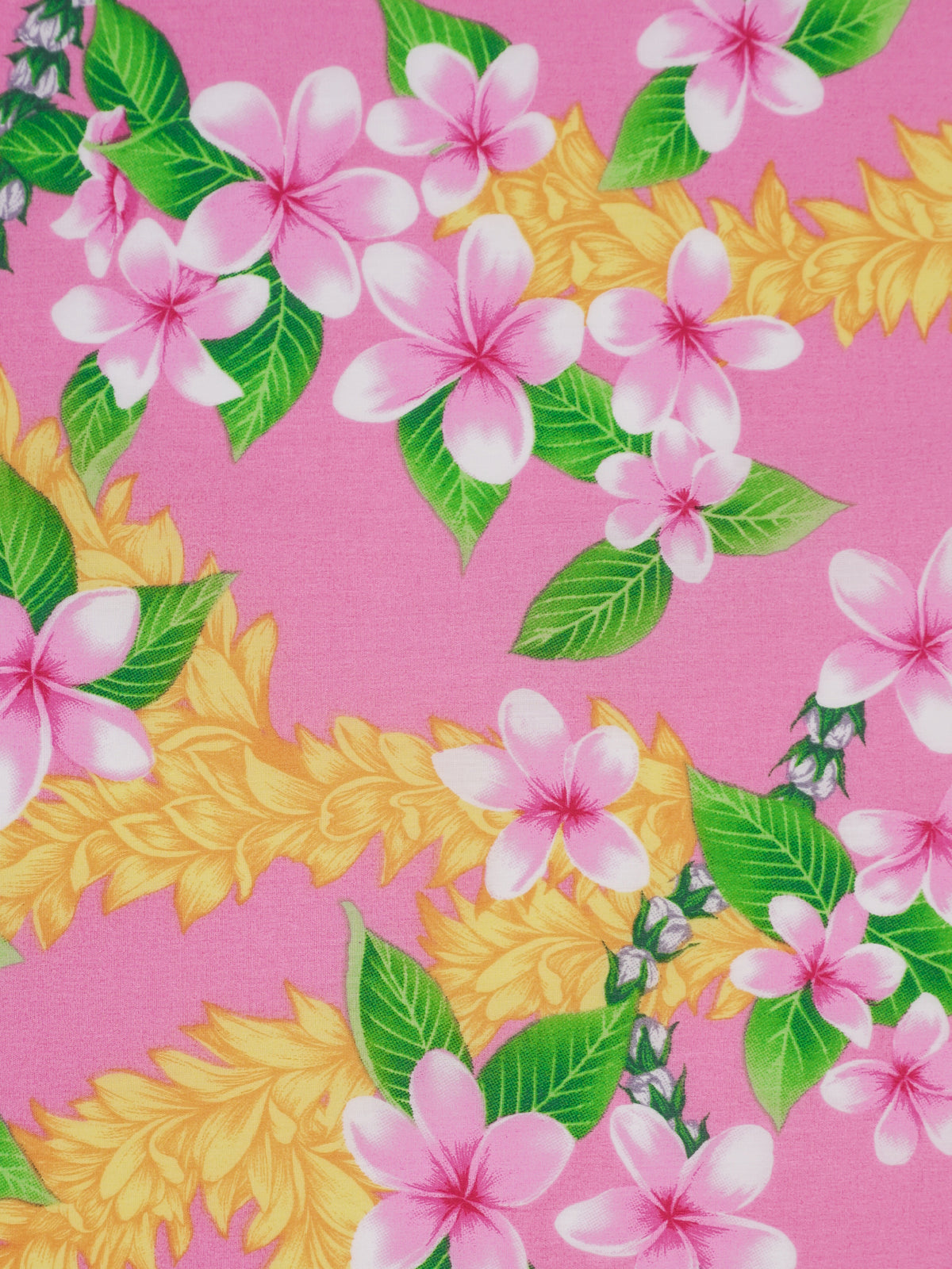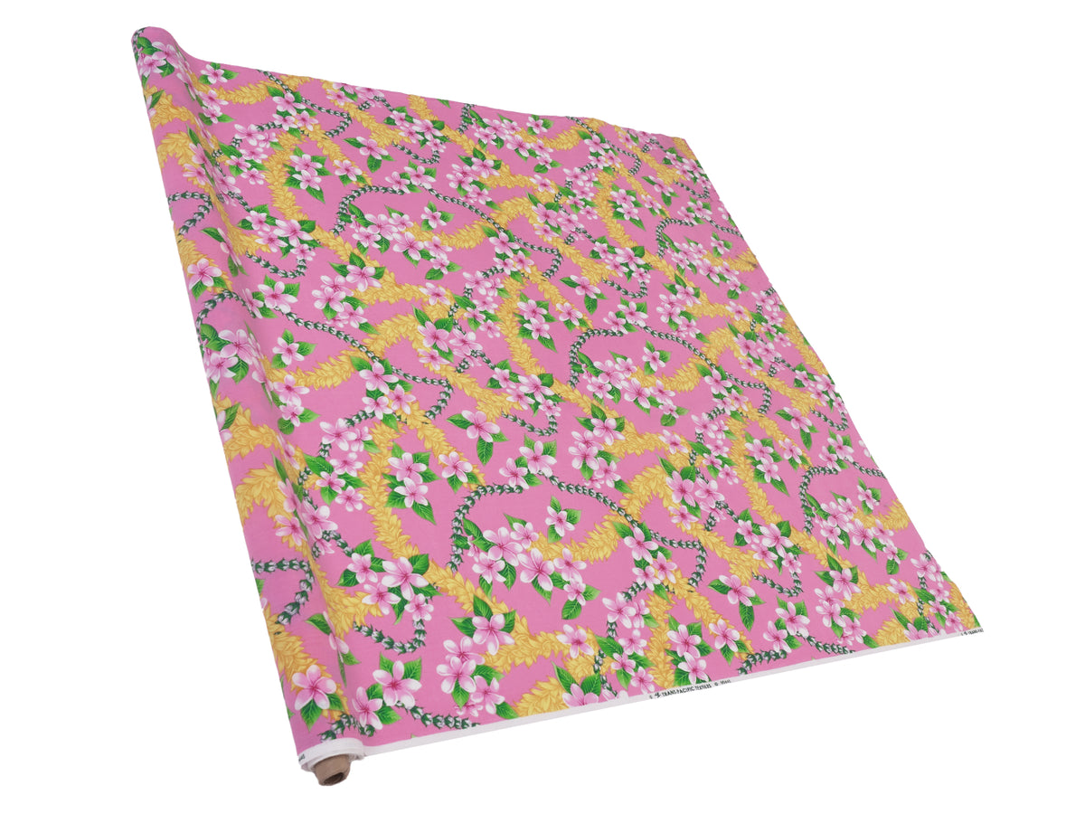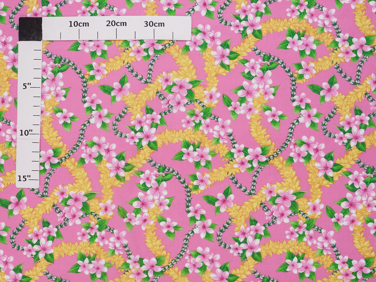 Ka Makani - Plumeria Lei Pink Poly Cotton Hula Pau Skirt / 3 Bands