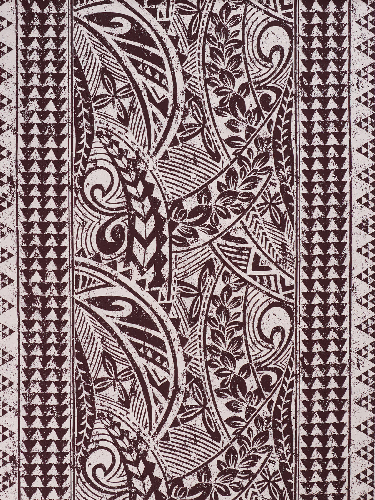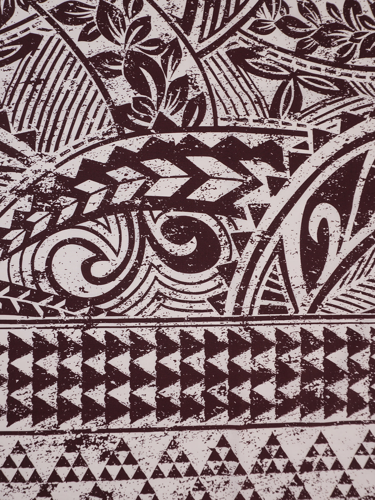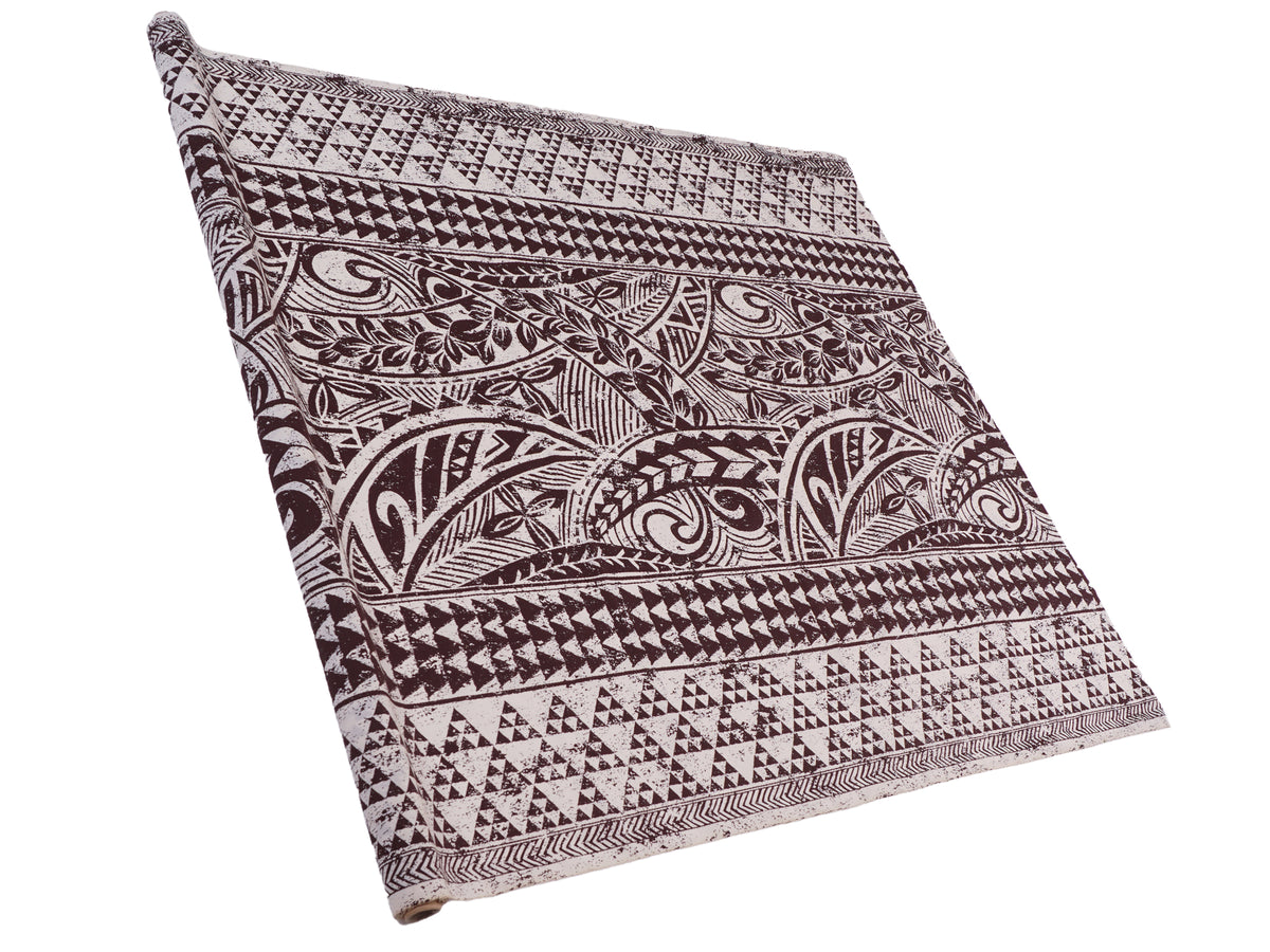 Ka Makani - Tribal Tattoo Cream & Brown Poly Cotton Hula Pau Skirt / 3 Bands