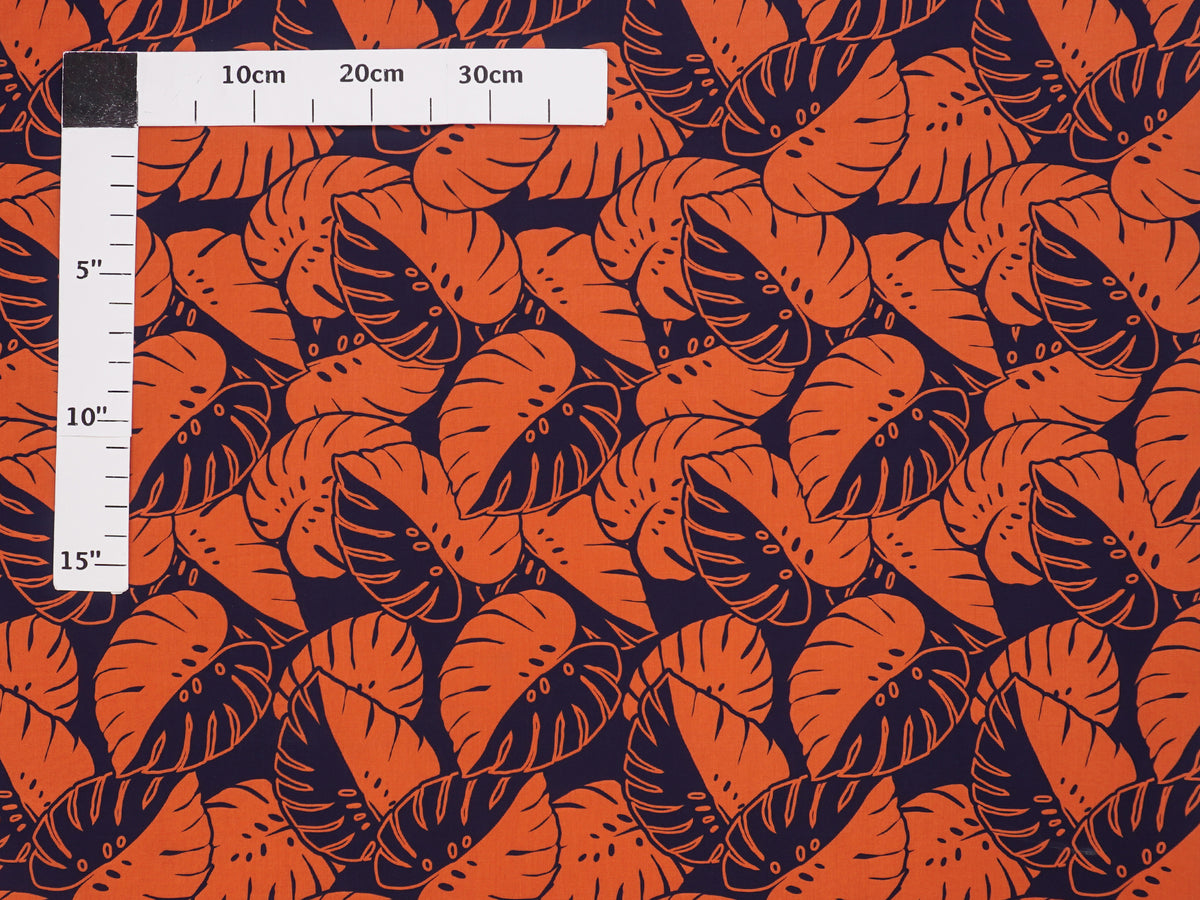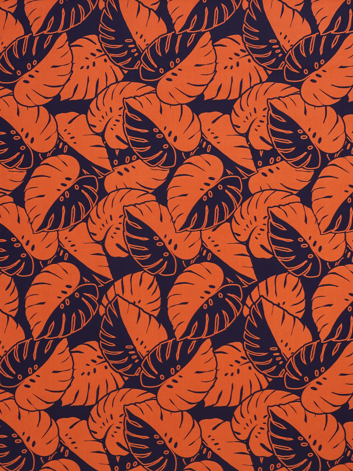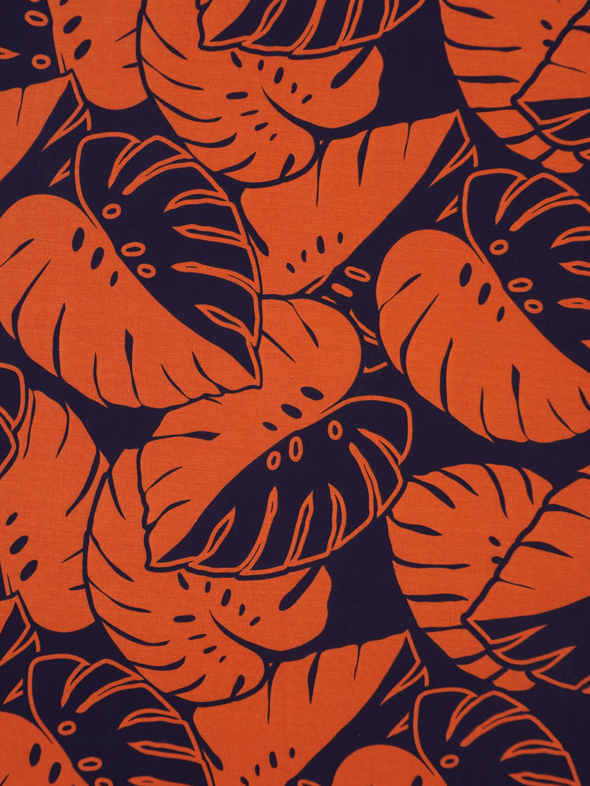 Ka Makani - Monstera Lover Navy & Brown Poly Cotton Hula Pau Skirt / 3 Bands