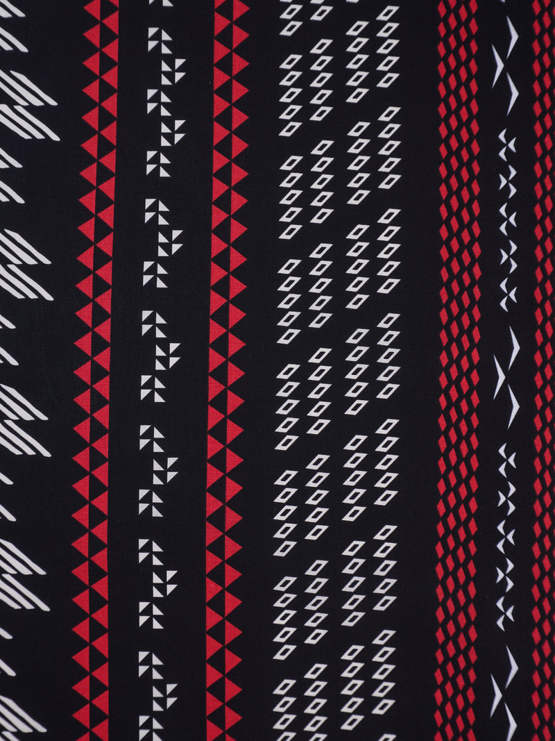 Ka Makani - Tribal Triangle Black & Red Poly Cotton Hula Pau Skirt / 3 Bands