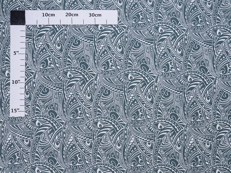 Ka Makani - Tribal Tattoo Sage Poly Cotton Hula Pau Skirt / 3 Bands