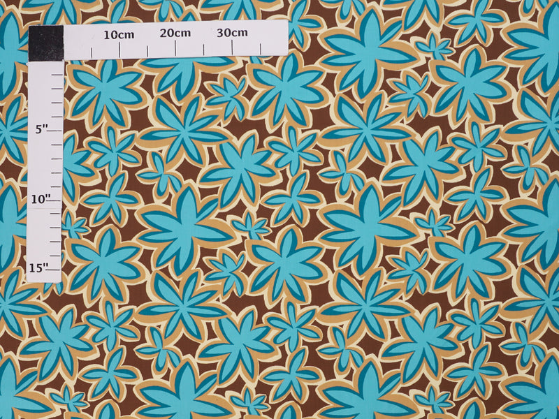 Ka Makani - Hibiscus & Tiare Coffee Poly Cotton Hula Pau Skirt / 3 Bands