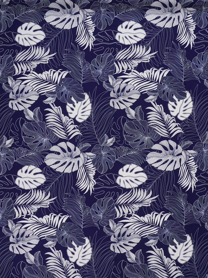 Ka Makani - Big Monstera Leaf Navy Poly Cotton Single Pau Skirt / 3 Bands