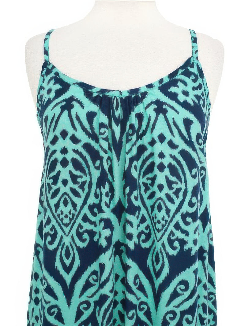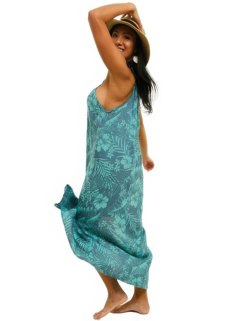 Napua Collection Honolulu - Hibiscus Farn Mint & Grey Rayon Racer Back O ring Maxi Dress
