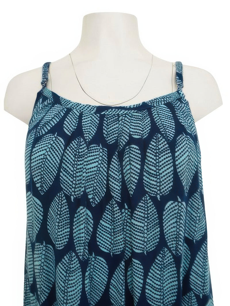 Napua Collection Honolulu - Mango Leaf Navy & Blue Rayon Ankle Long Dress