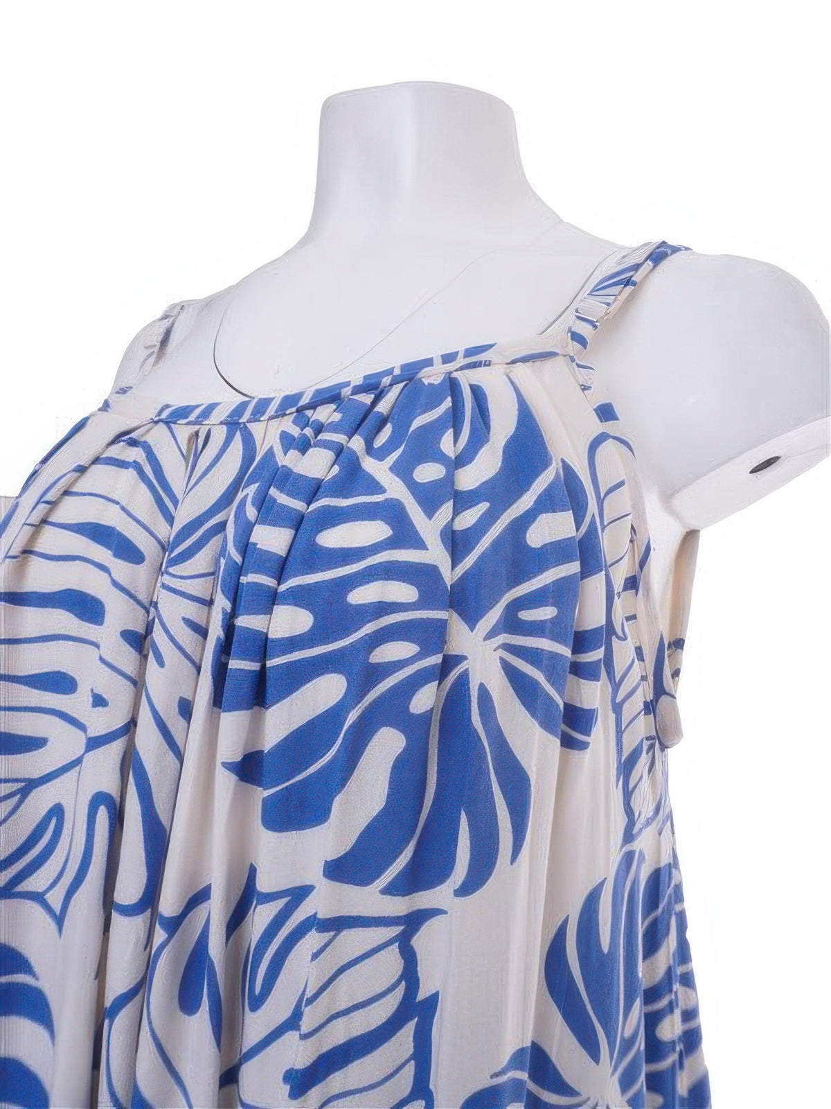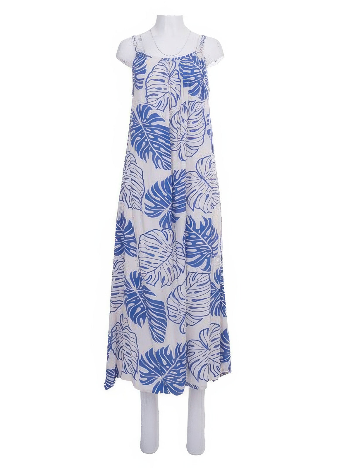 Napua Collection Honolulu - Reverse Monstera Blue Rayon Ankle Long Dress