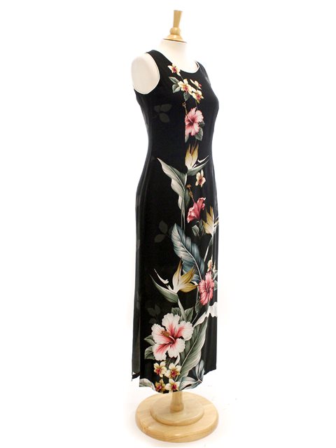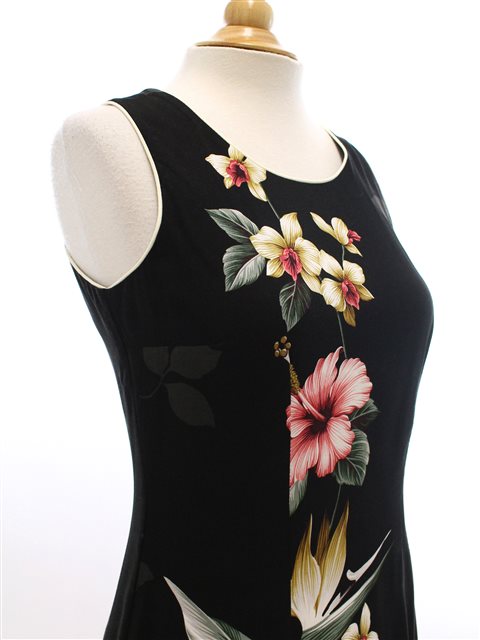 Hawaiian Dress and Shirt Couple Matching Bundle - Tropical Flowers Black