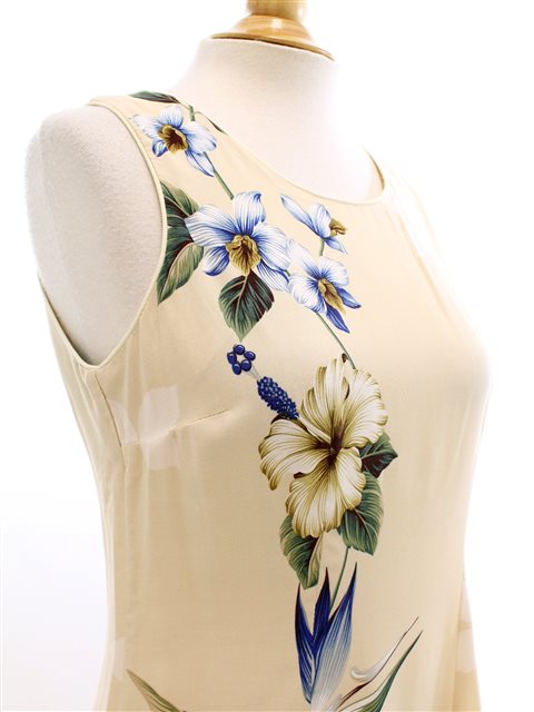 Hawaiian Dress and Shirt Couple Matching Bundle - Tropical Flowers Cream