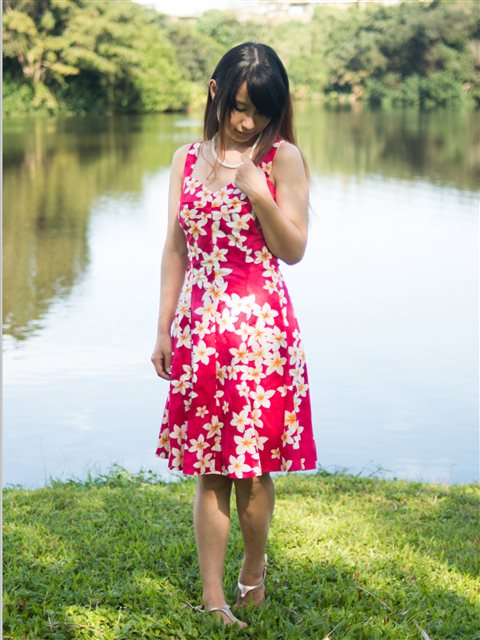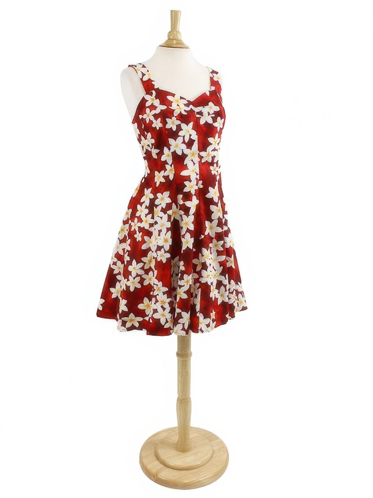 Royal Hawaiian Creations - Plumeria Red Cotton Hawaiian Mini Sundress