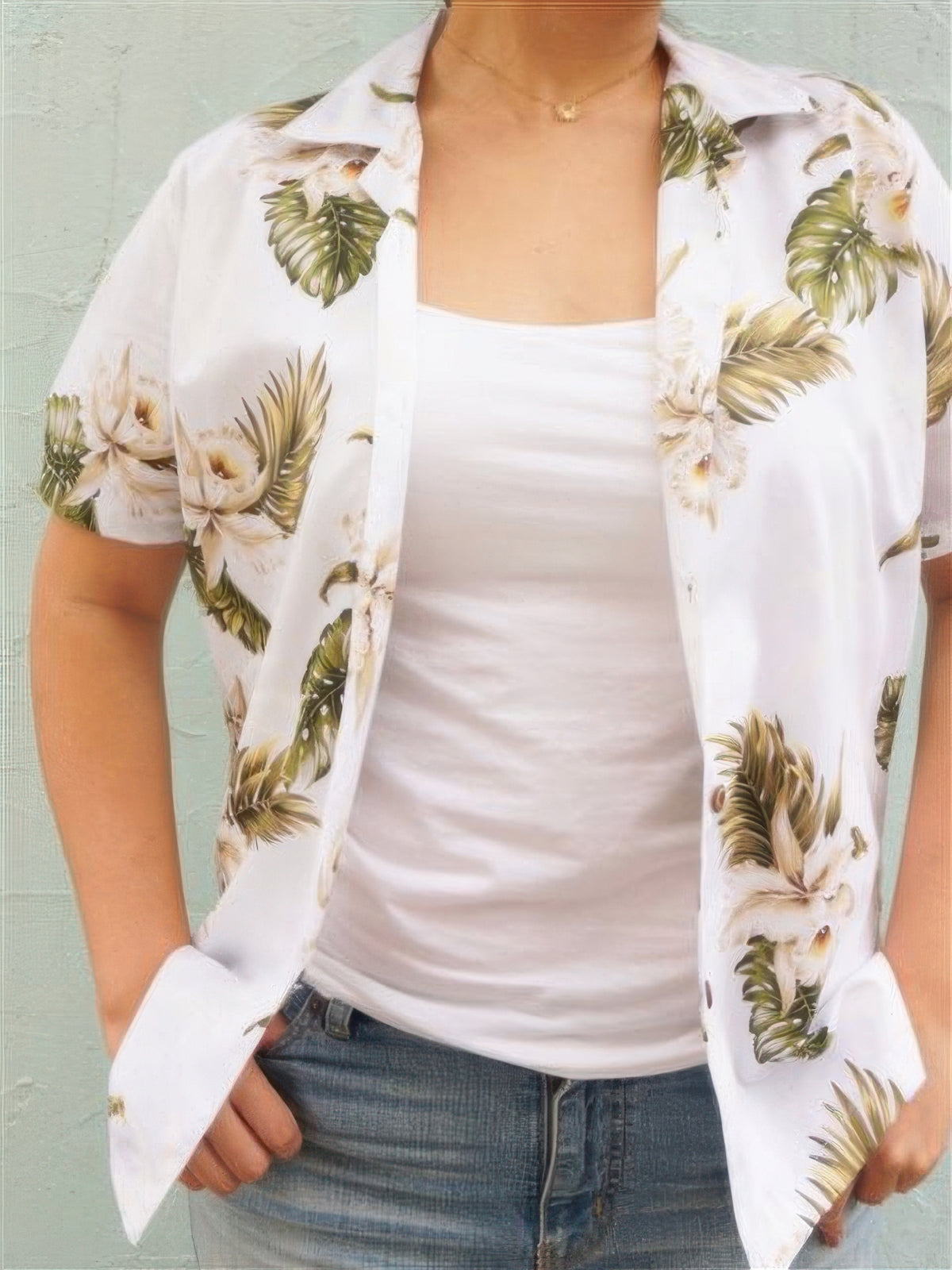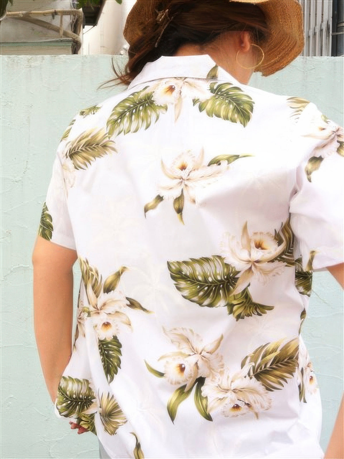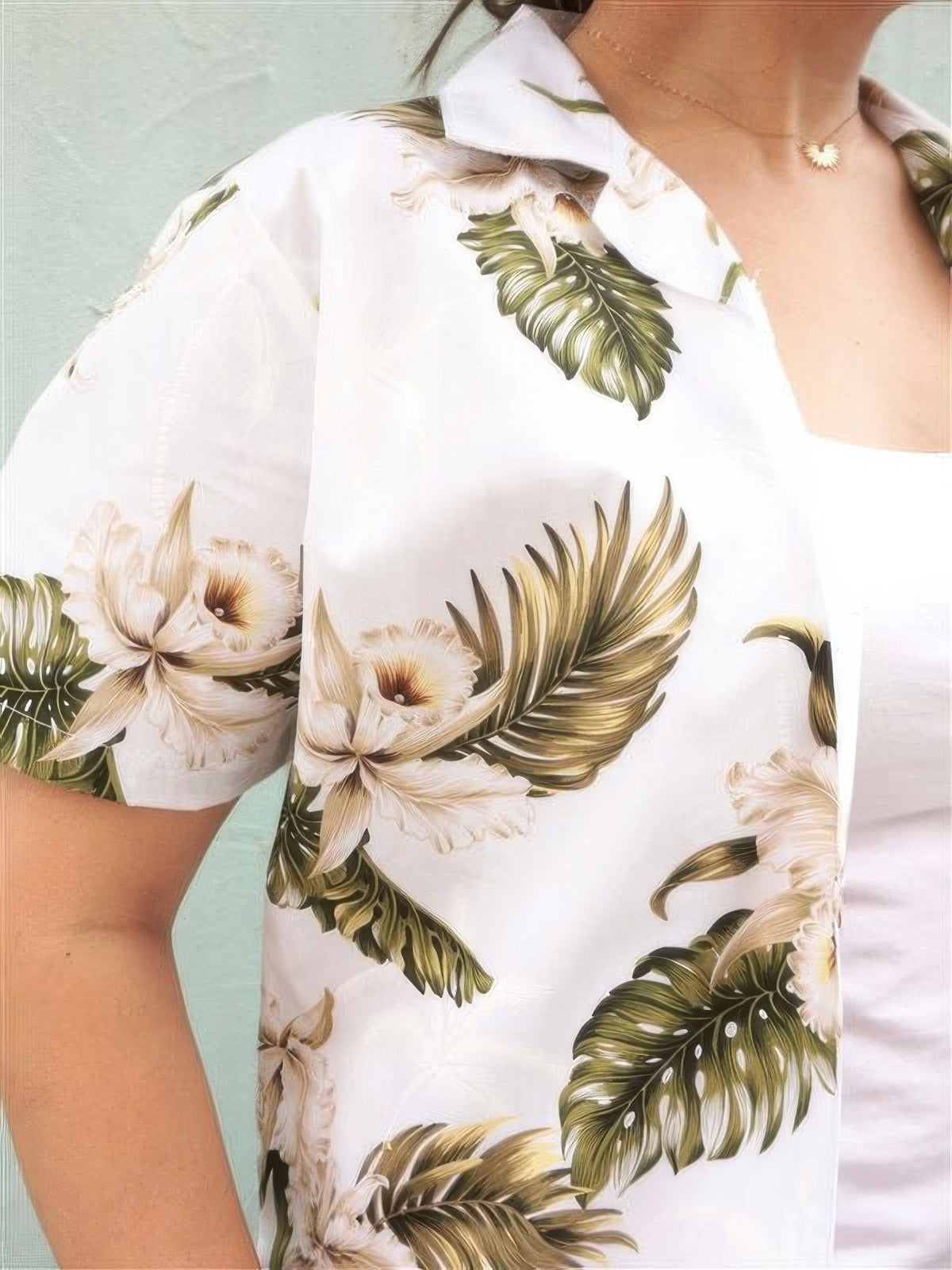 Ky's - Classic Orchid White Cotton Women's Hawaiian Shirt