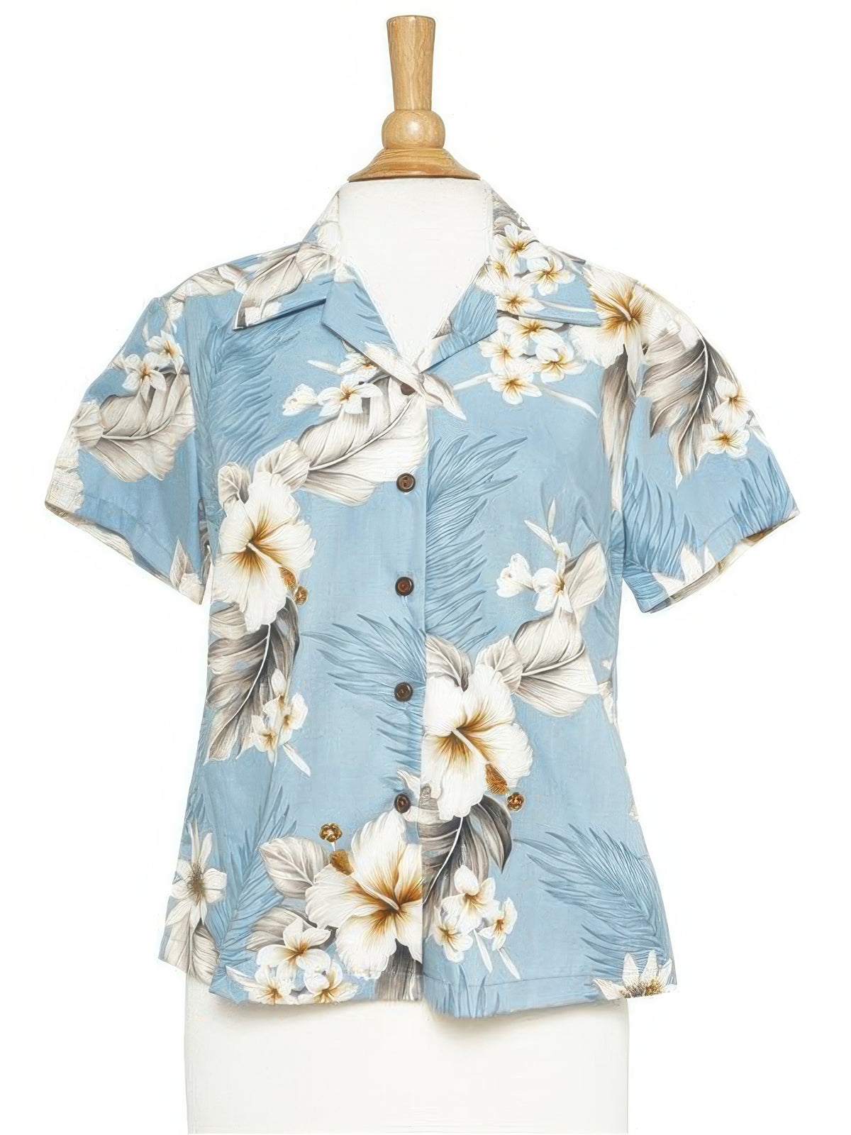 Pacific Legend - Hibiscus Blue Cotton Women's Fitted Hawaiian Shirt