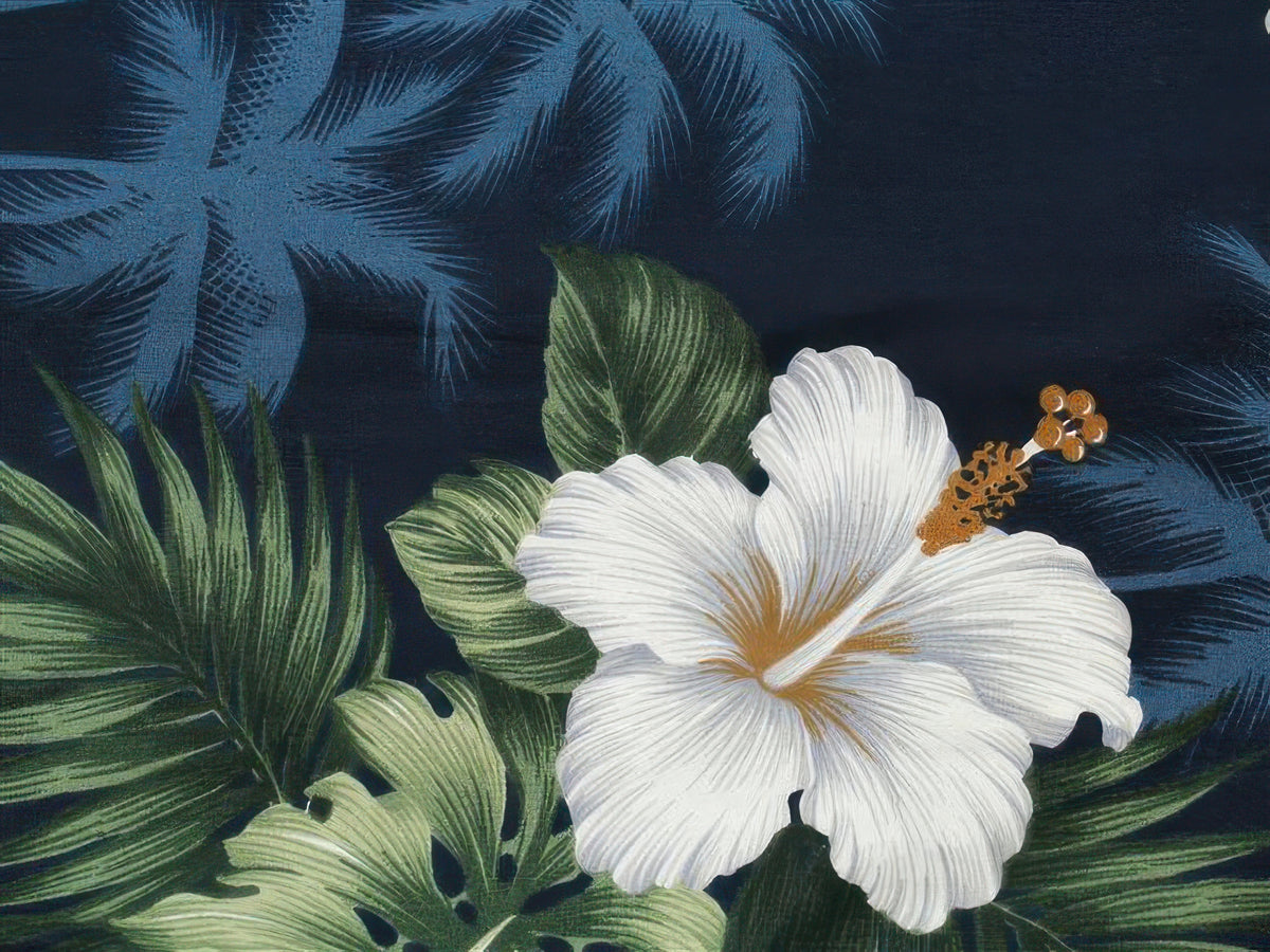 Pacific Legend - Hibiscus Monstera Navy Cotton Women's Fitted Hawaiian Shirt