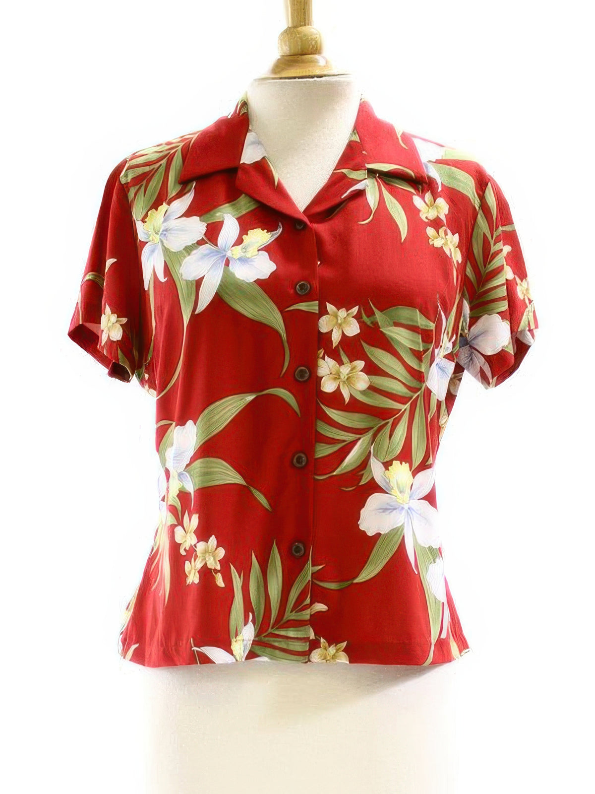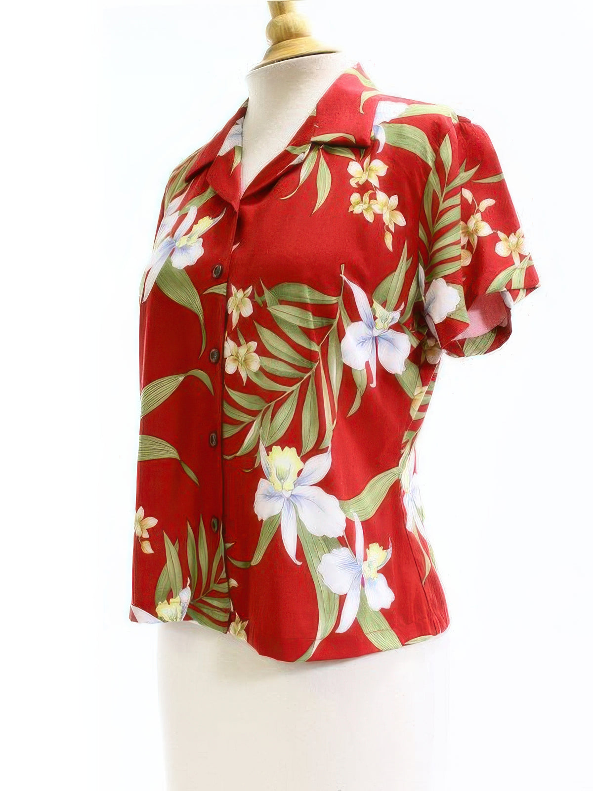Two Palms - Pali Orchid Red Rayon Women's Hawaiian Shirt