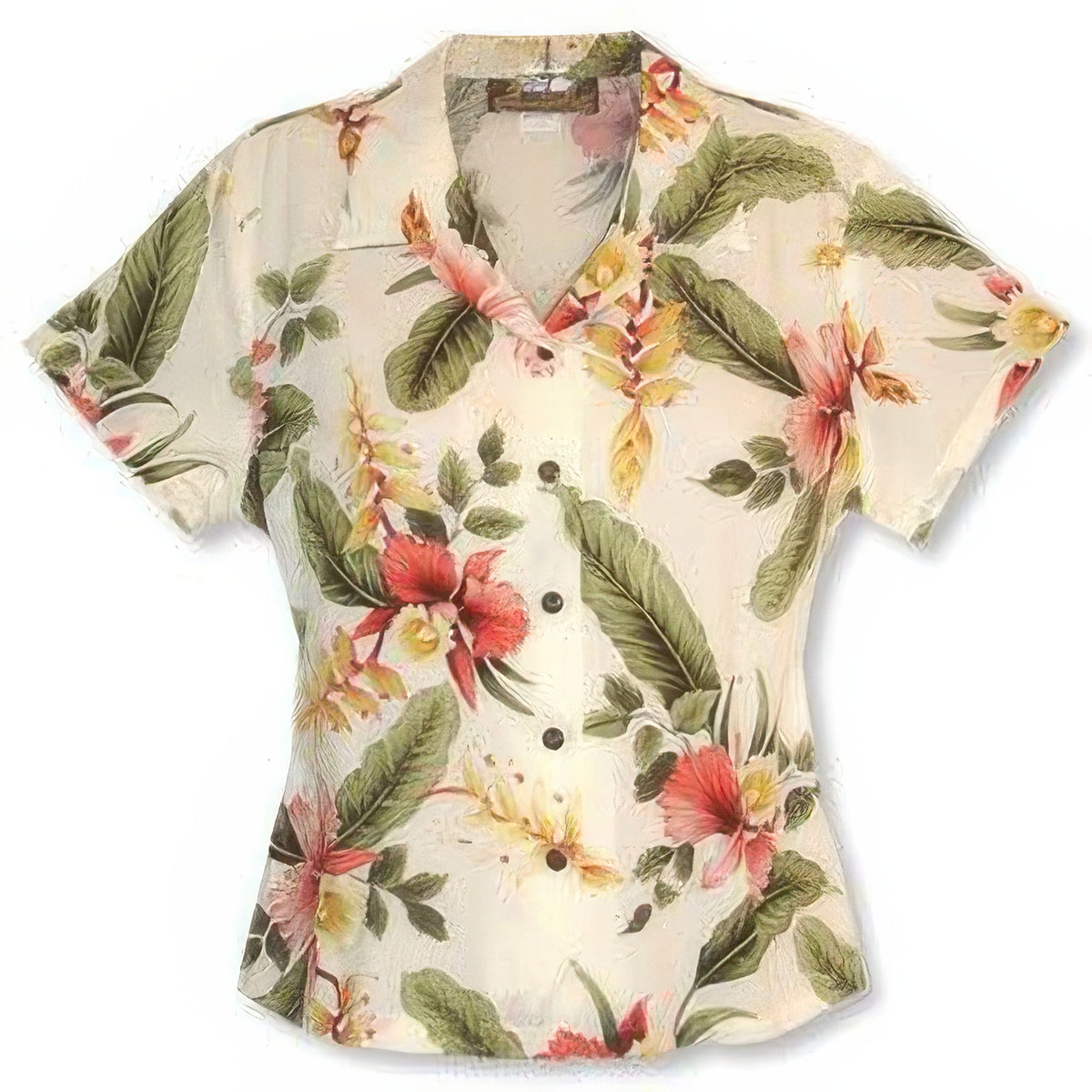 Enjoy timeless island style with this Women’s Hawaiian Shirt by Two Palms, featuring the popular Sonic Beige floral print. Made in Hawaii from 100% soft rayon, this shirt offers a smooth, lightweight feel that keeps you cool and comfortable all day long.