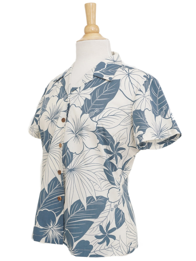 Two Palms - Lanai Blue Cotton Women's Hawaiian Shirt