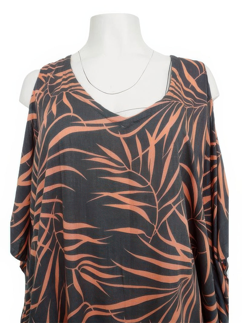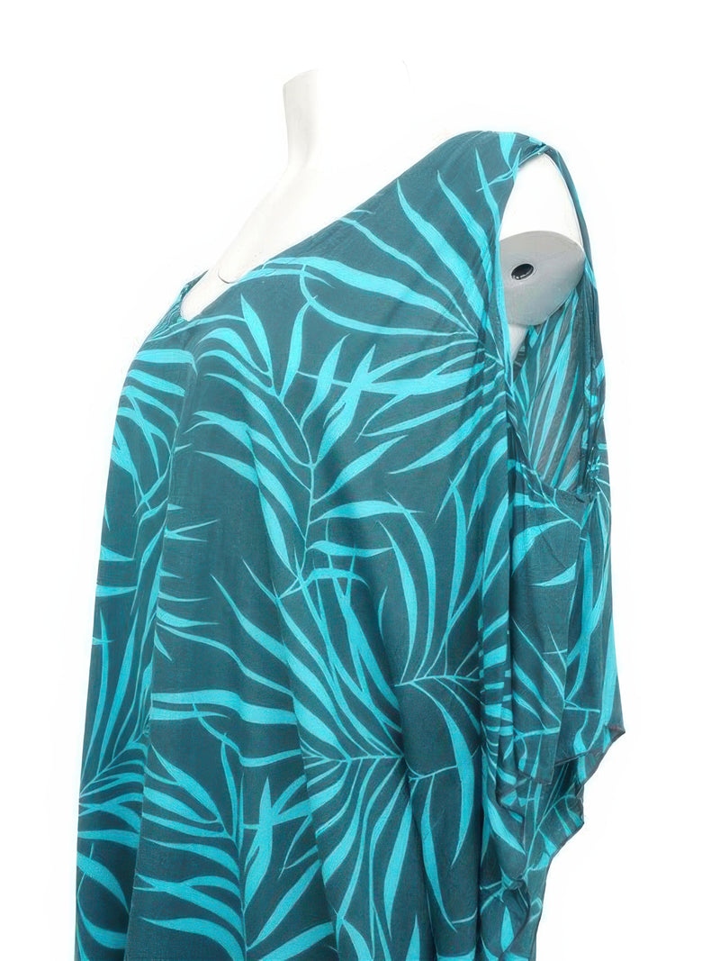 Napua Collection Honolulu - Tropical Leaves Turquoise Rayon Cover Up w/ Shoulder Holes