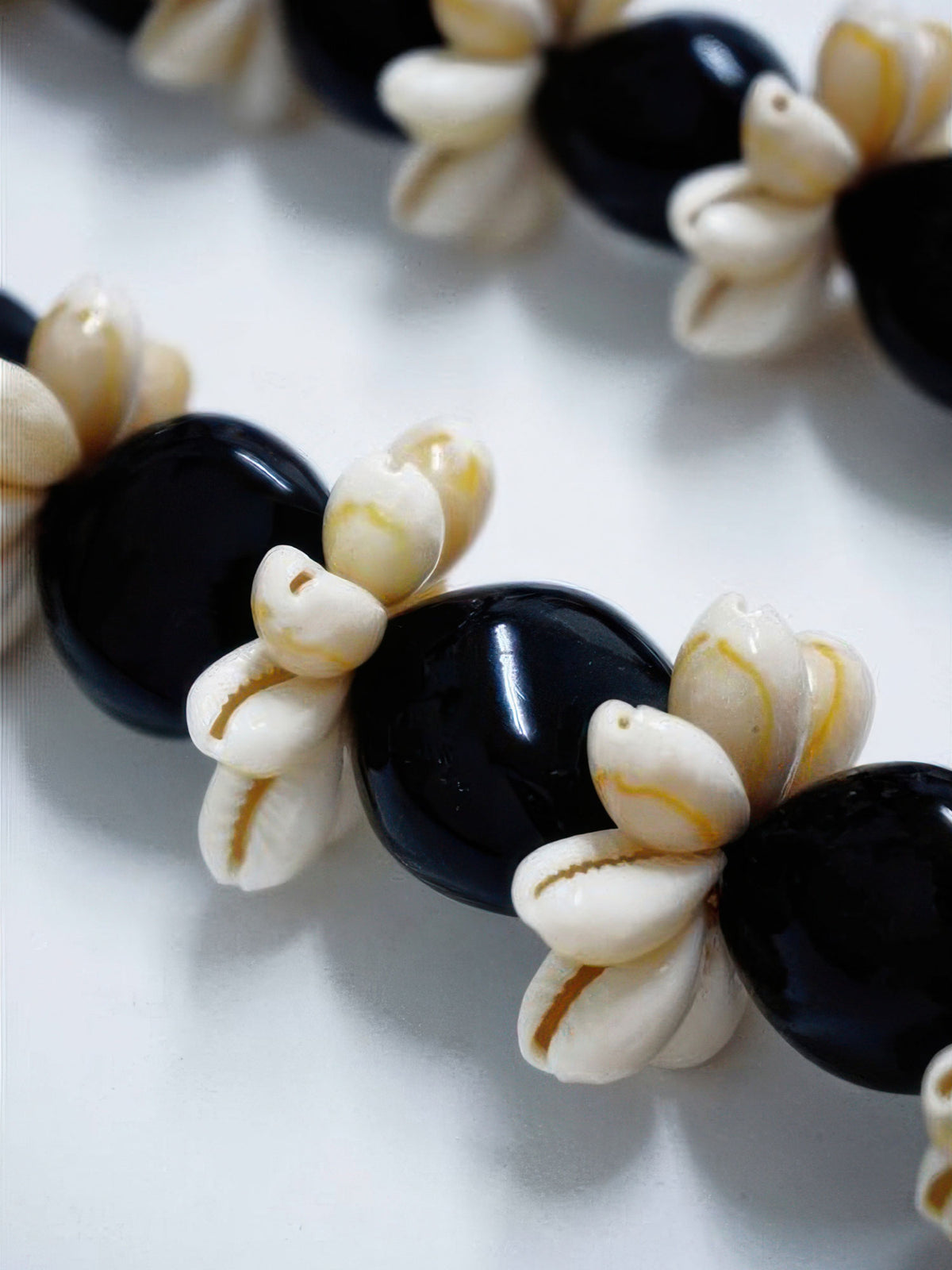 Crafted from lustrous black kukui nuts paired with delicate cowry shells, this lei represents a harmonious blend of traditional Hawaiian materials. Each piece showcases the natural beauty of these elements, creating a distinctive accessory that honors cultural heritage while offering timeless elegance.