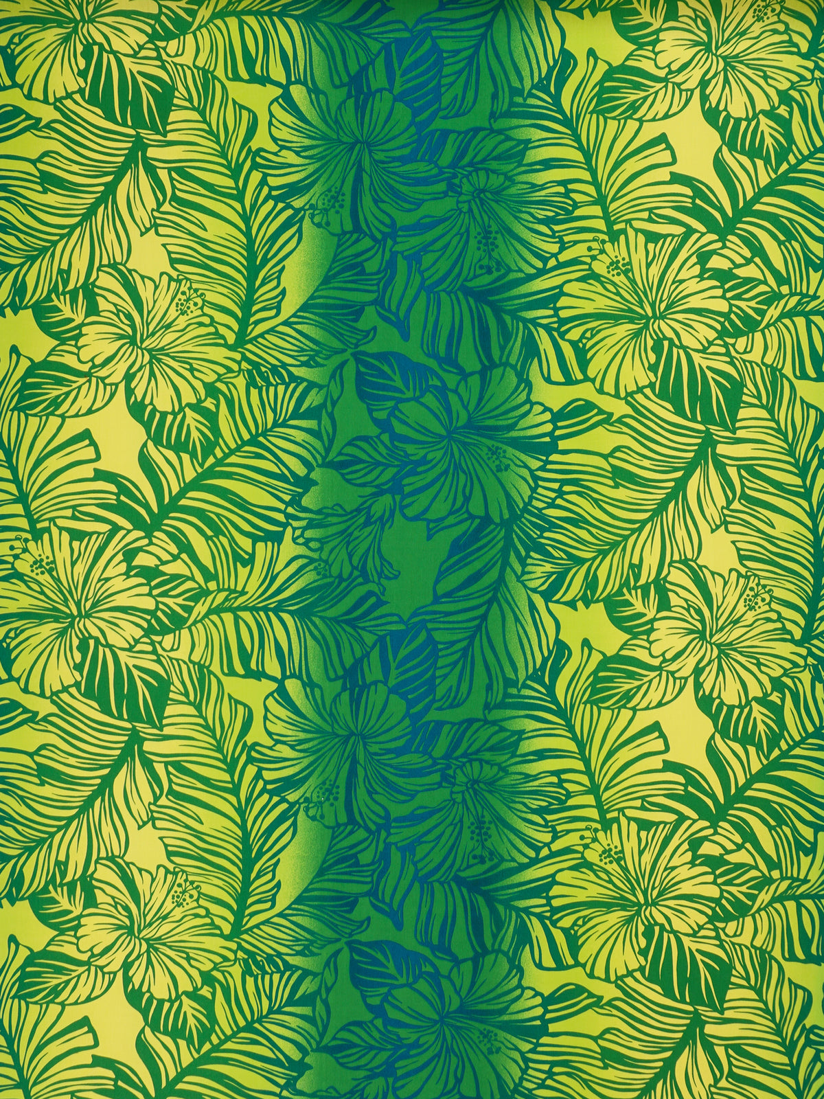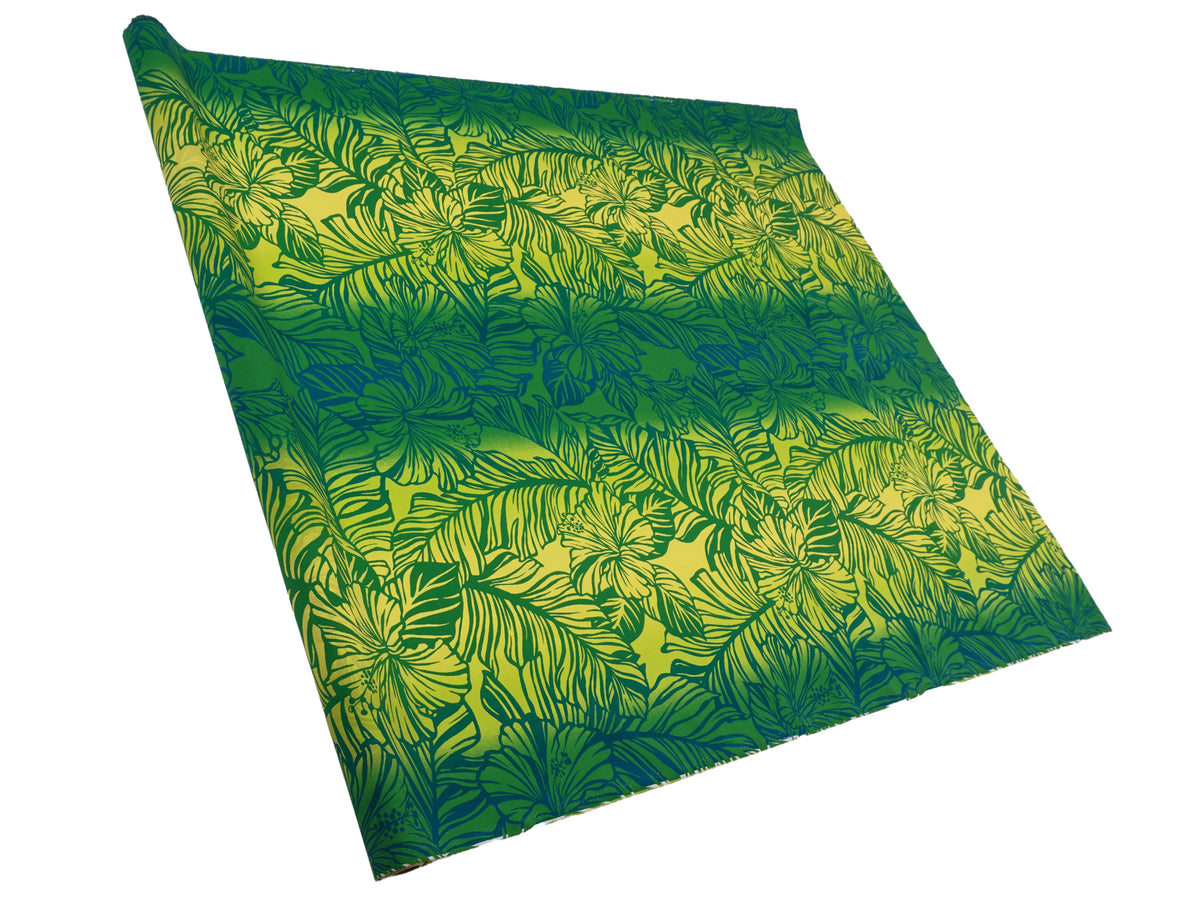 Ka Makani - Hibiscus Gradation Green Poly Cotton Single Hula Pau Skirt / 3 Bands