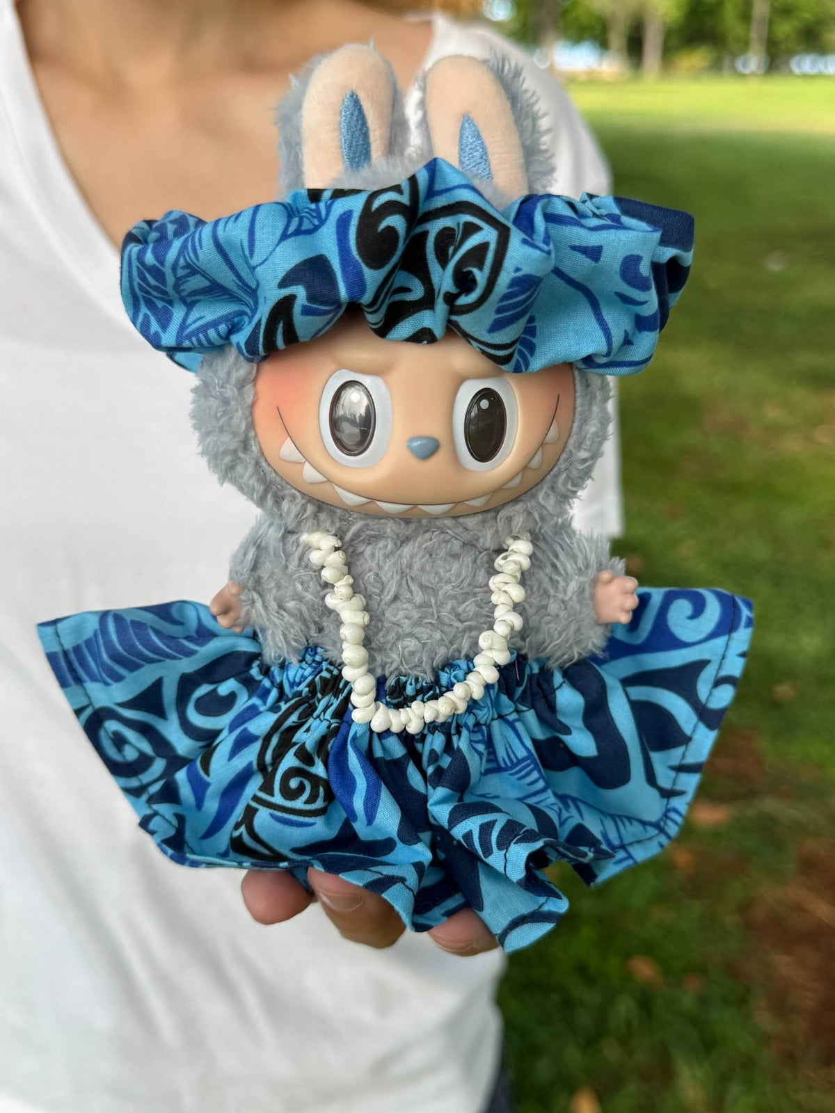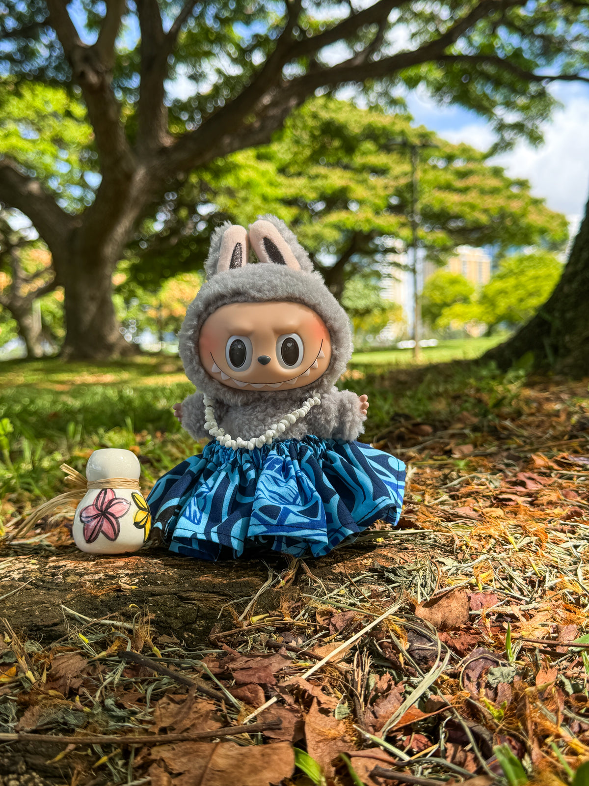 Ka Makani - Labubu Mini Figure Pa'u Skirt Set (Pa'u and Lei) - Tribal Turtle Blue