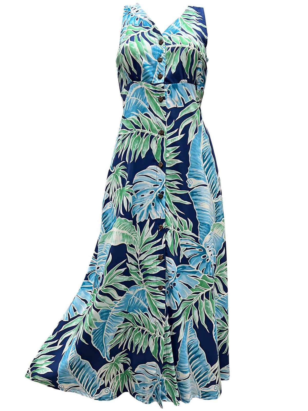 Paradise Found - Cabana Palms Navy Rayon Hawaiian Long Dress