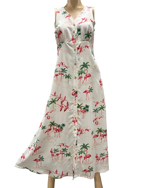 Paradise Found - Flamingo Sand Rayon Hawaiian Long Dress