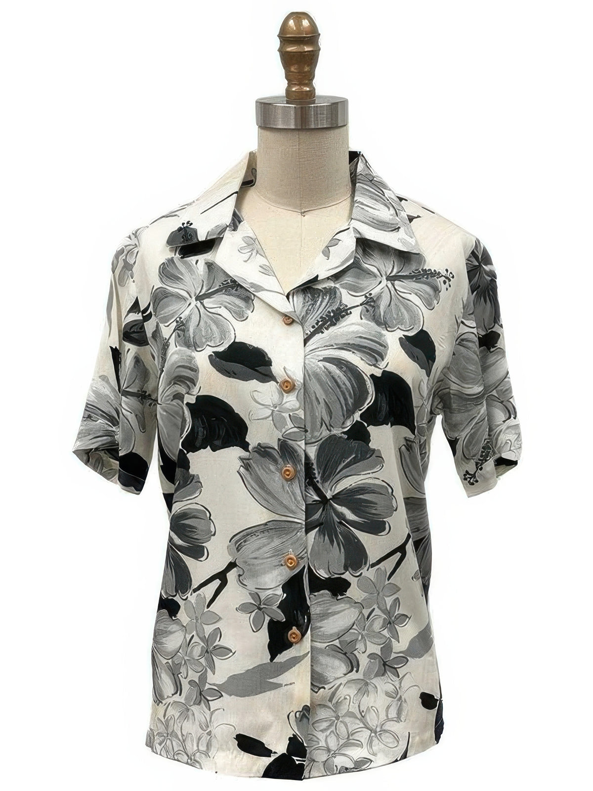 Paradise Found - WATERCOLOR HIBISCUS Gray Rayon Women's Hawaiian Shirt