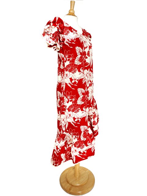Two Palms - Orchid Monstera Red Cotton Hawaiian Long Muumuu Dress