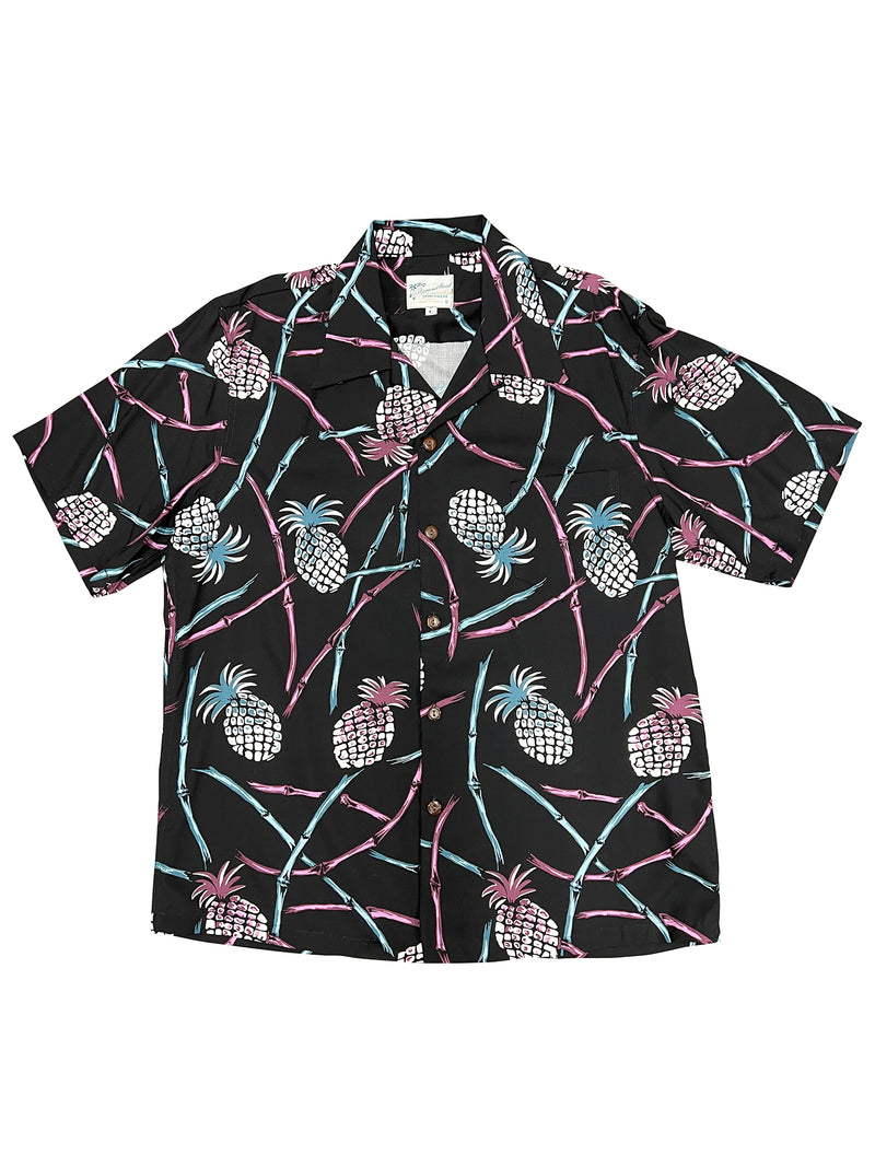 Paradise Found - Pineapple Bamboo Black Rayon Men's Hawaiian Shirt
