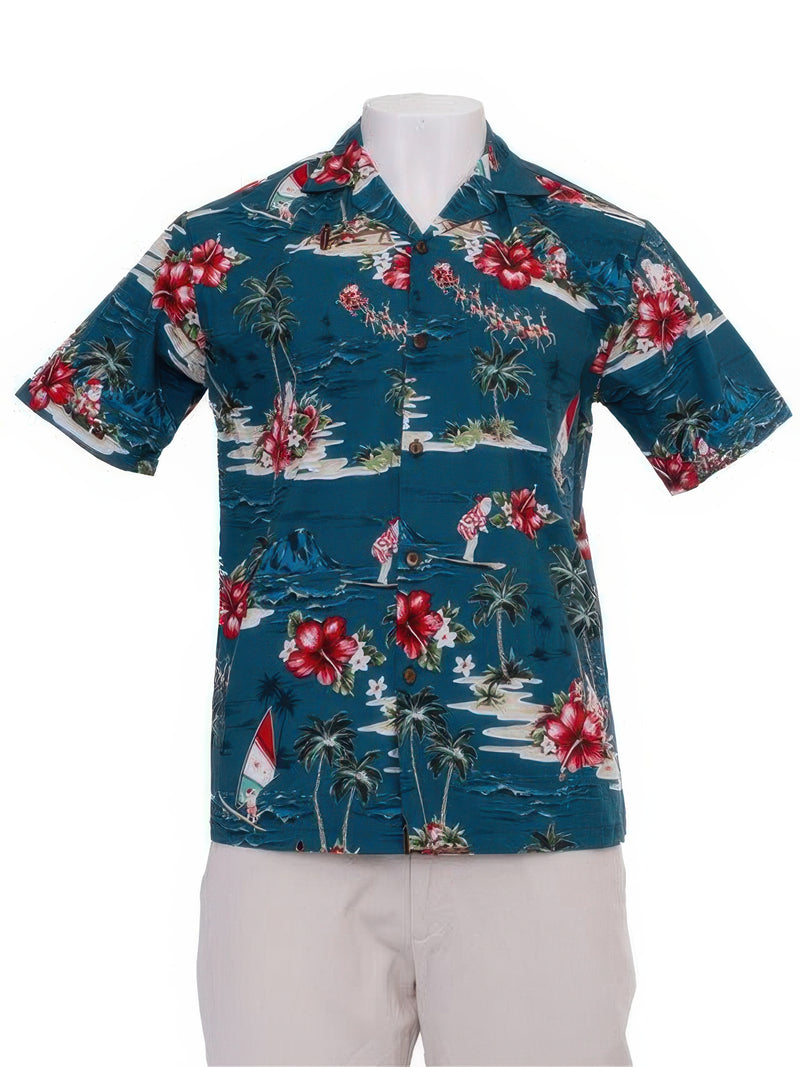 Ky's - Christmas Teal Cotton Poplin Men's Hawaiian Shirt