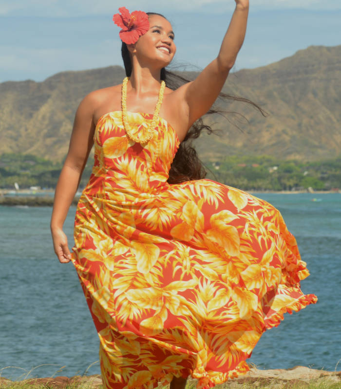 Sarong King - Pineapple Bleached Apricot Wailea Long Dress