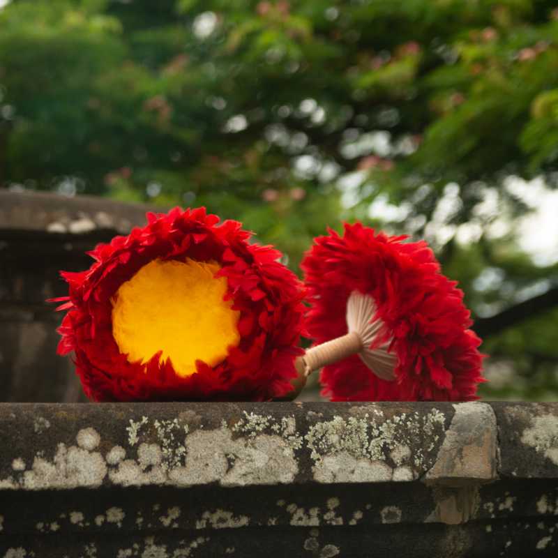 Ka Makani - Ohia Lehua Red Poly Cotton Hula Pau Skirt / 3 Bands