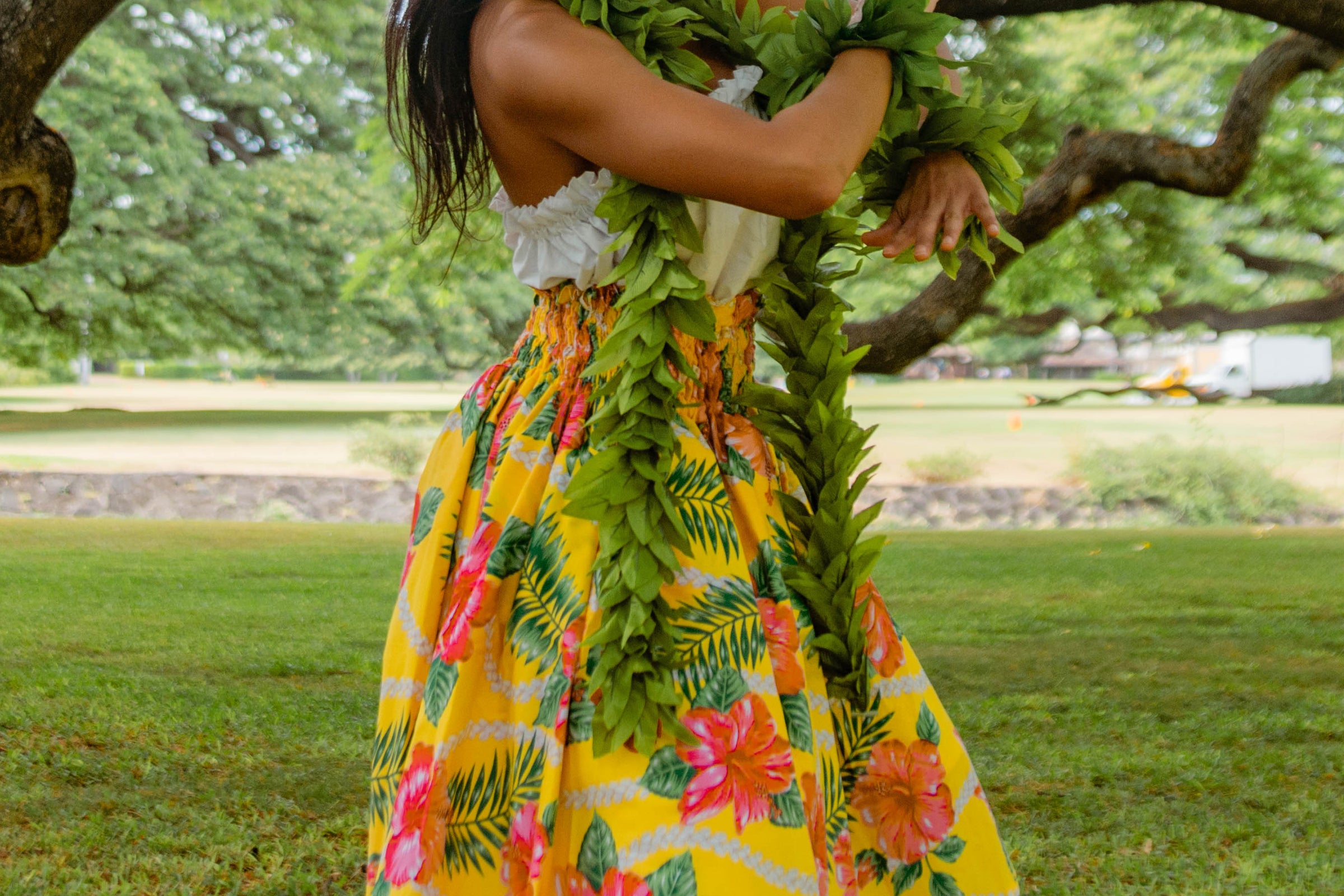 Ka Makani - Monstera Royal Poly Cotton Hula Pau Skirt / 3 Bands